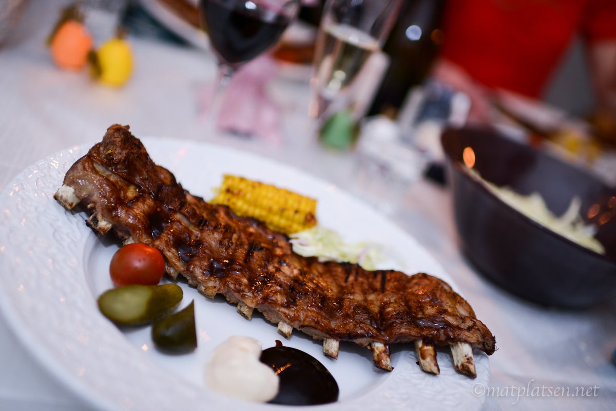 Till huvudrätt ribs. Mums!! Och en marängtårta som tyvärr inte fastnade på bild.