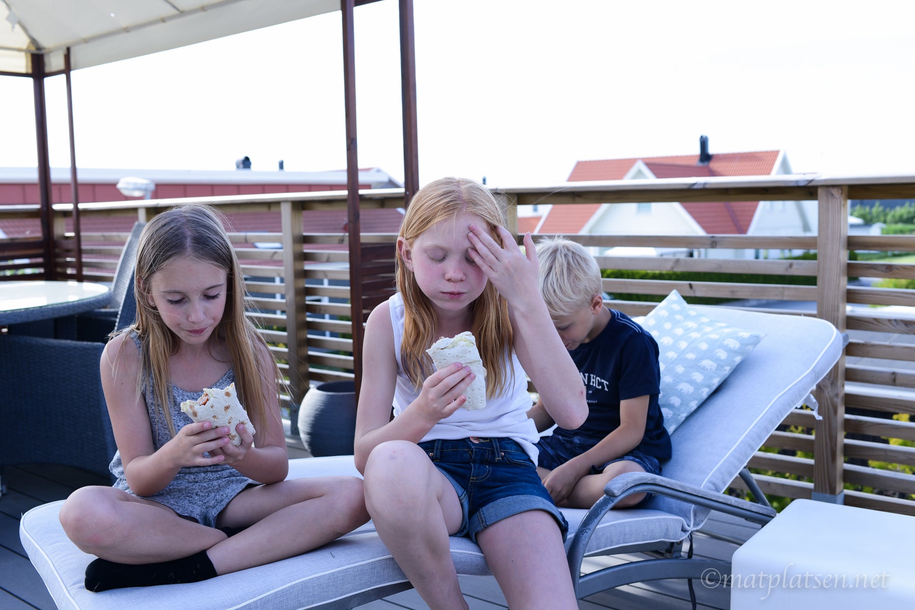 Hej hej. Blev det nån tunnbrödsrulle igår? Jadå! Så himla gott! Marcus kom förbi och bjöd in sig på en korv och Olivia hade en kompis över. Lite så det är på sommaren, det är folk i huset hela tiden 🙂