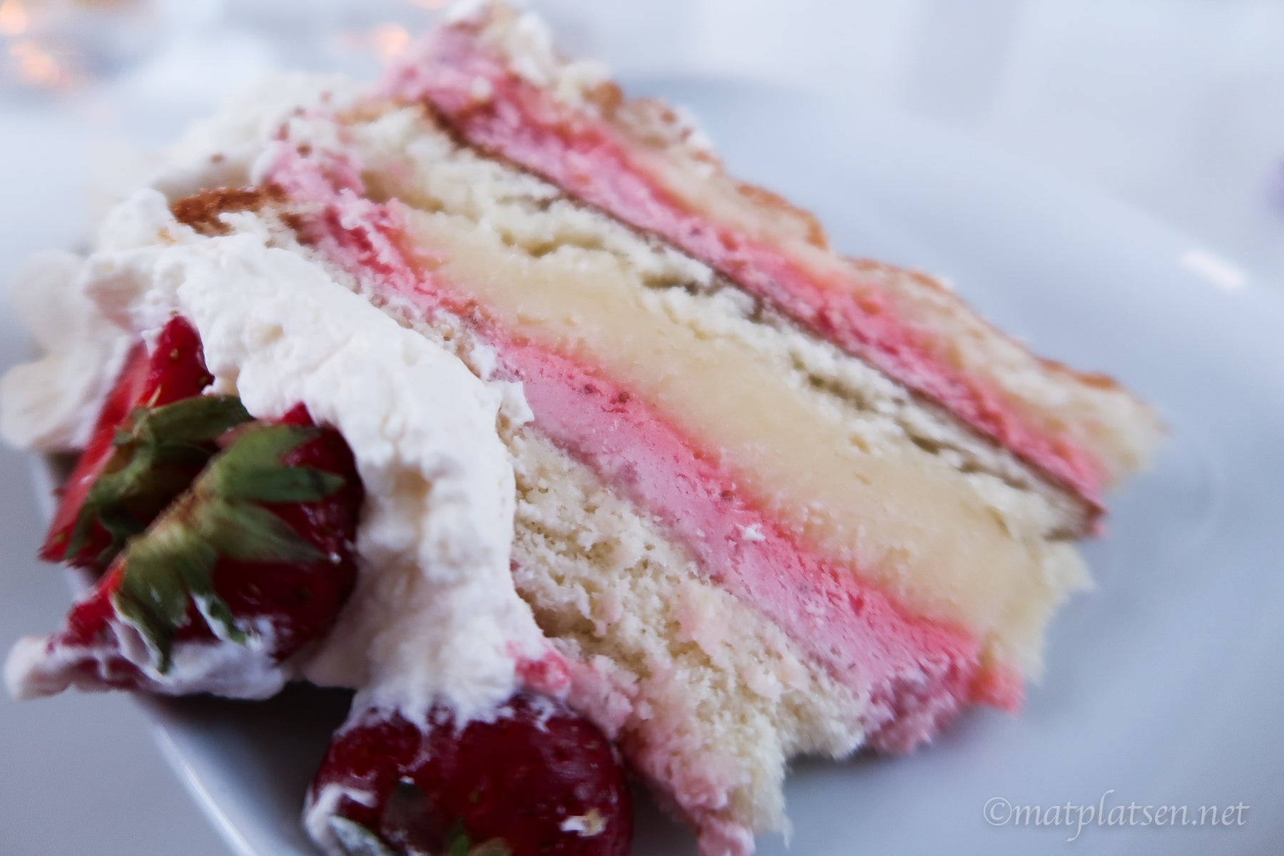 Hej hej. Har några goda recept från Midsommar som jag aldrig skrev ner. Bla tårtan Stina bjöd på! Syrlig god fyllning till allt det söta med sin citronkräm och jordgubbsmousse. Receptet kommer från Roy Fares och då kan det väl nästan aldrig bli fel 🙂 (låt er inte avskräckas av att det är många moment och ingredienser, det är inga konstigheter).