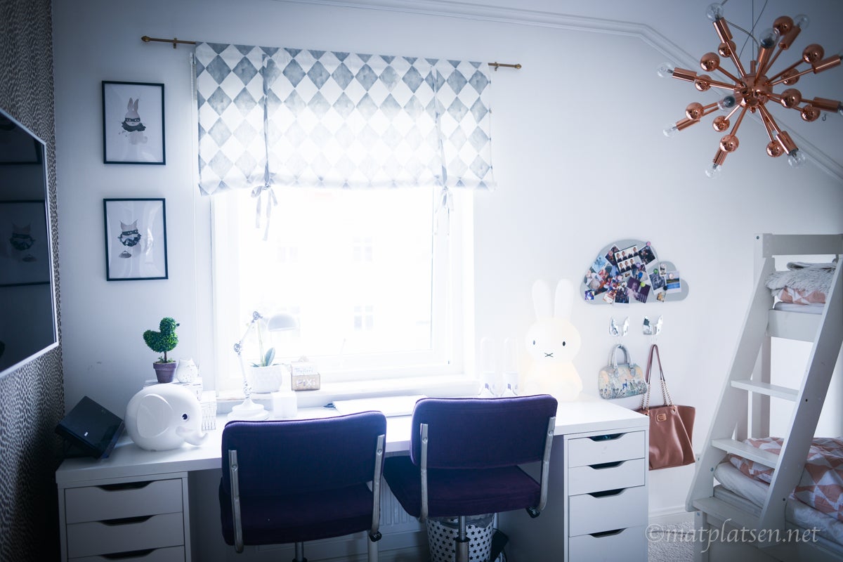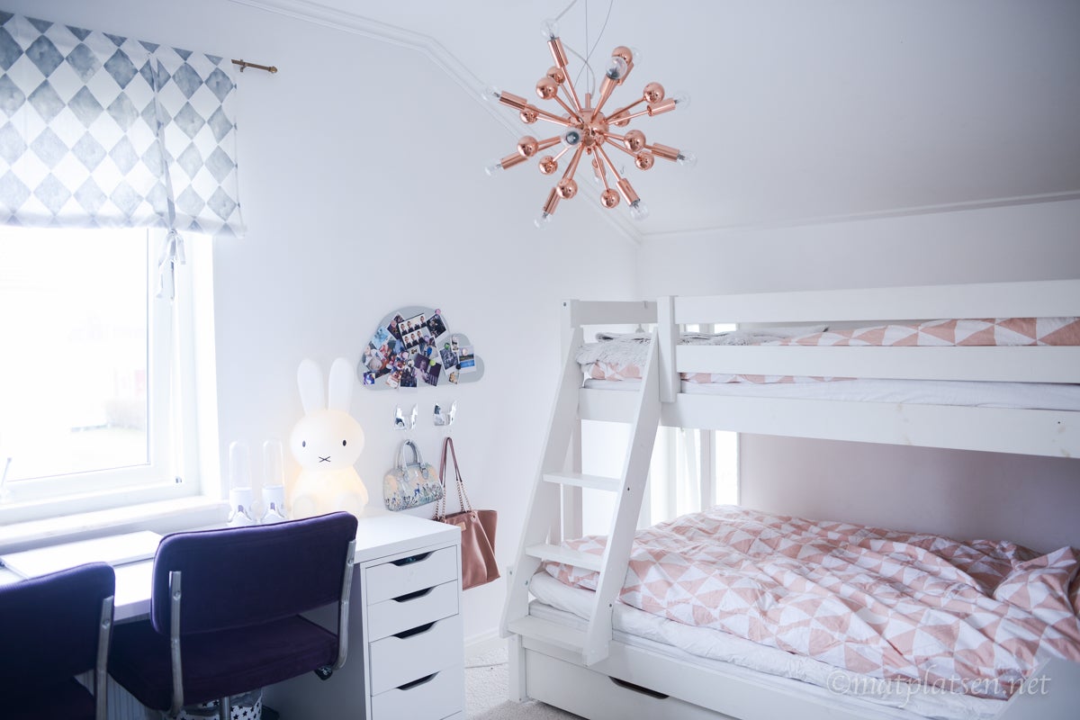 Skrivbord och sängbord från IKEA, våningssäng MIO, krokarna från Zara, boxarna Lagerhaus, heltäckningsmatta Bauhaus, taklampa HÄR, korg med gosedjur i Åhléns, sängbordslampa HÄR, lampa Miffy, spargris Newport. Gardin, påslakan och skrivbordsstolar från Ellos. Missa inte rabattkoden hos Ellos, med koden 355431 får ni 20% rabatt på hemsortimentet inkl möbler och varumärken (fullständiga villkor på hemsidan) HÄR så passa på!   KRAM