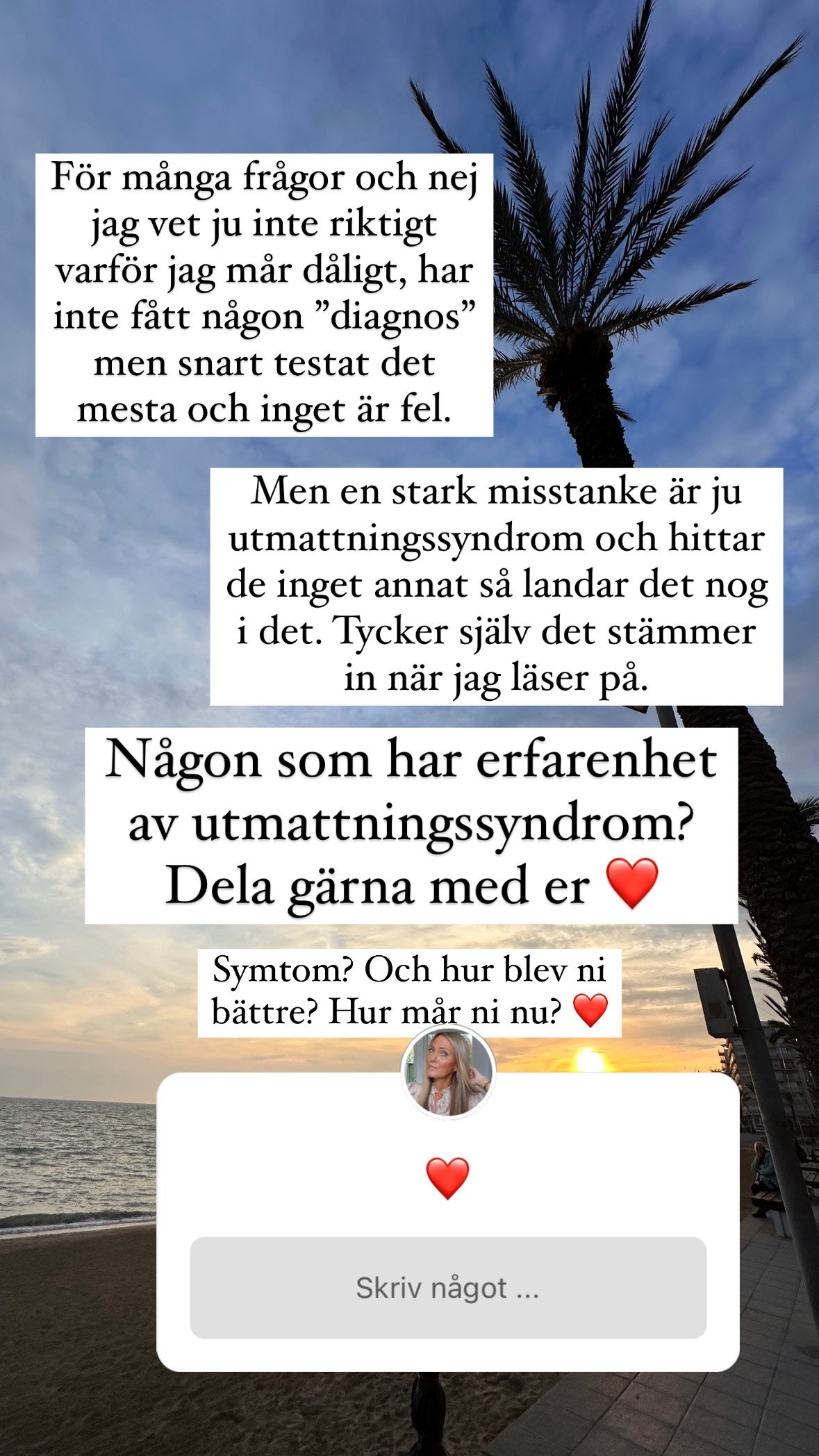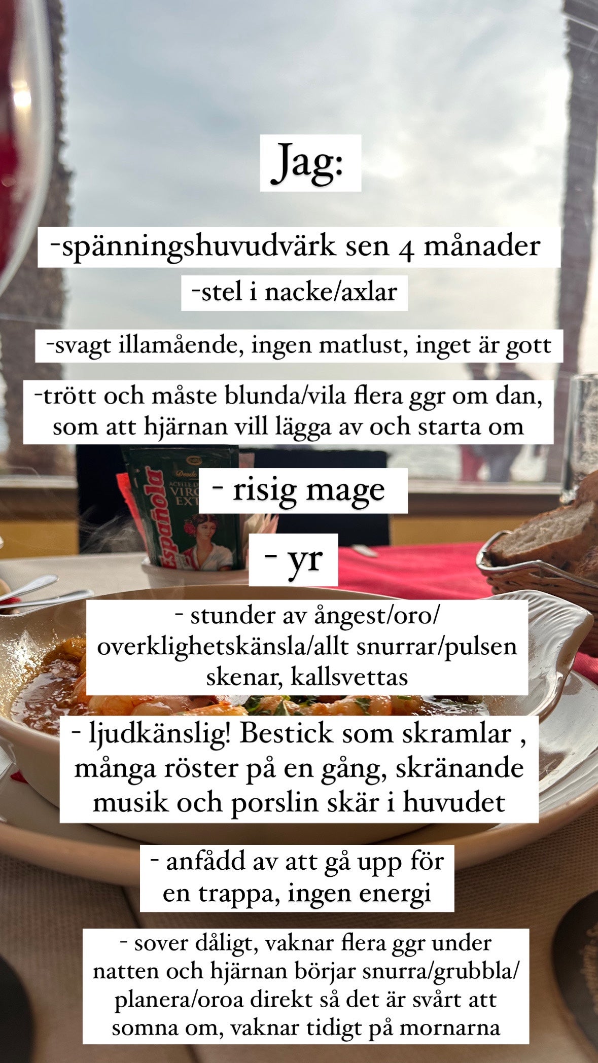 Min kropp började strejka 2022… dålig sömn, tappade hår, överkänslig för ljud/ljus och en trötthet som heter duga. Var dum och körde på ändå men i år så försvann 9-10 kilo (redan smal), tröttheten blev överväldigande och magen krånglade ihop med huvudvärk och fortsatt orolig sömn samt en hel del andra saker som påverkade mitt jobb negativt.