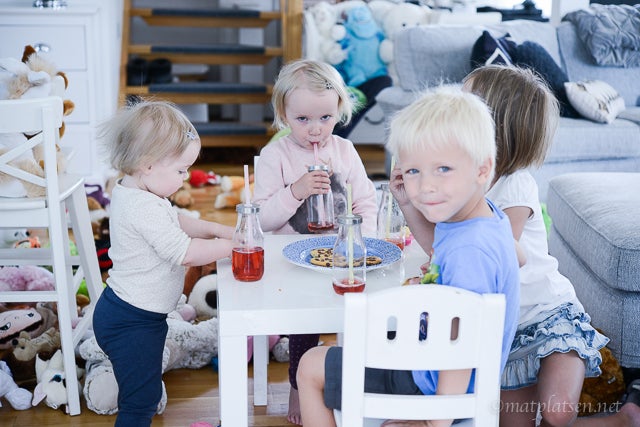 Asch det härliga avslutningsvädret vi hade i går är som bortblåst i dag. Bokstavligt talat! Usch vad det blåser ute. Blev en innedag här med playdate och fika. Huset ser ut därefter, hehe. Vardagsrummet ser ut som ett lekland. Maj gad.