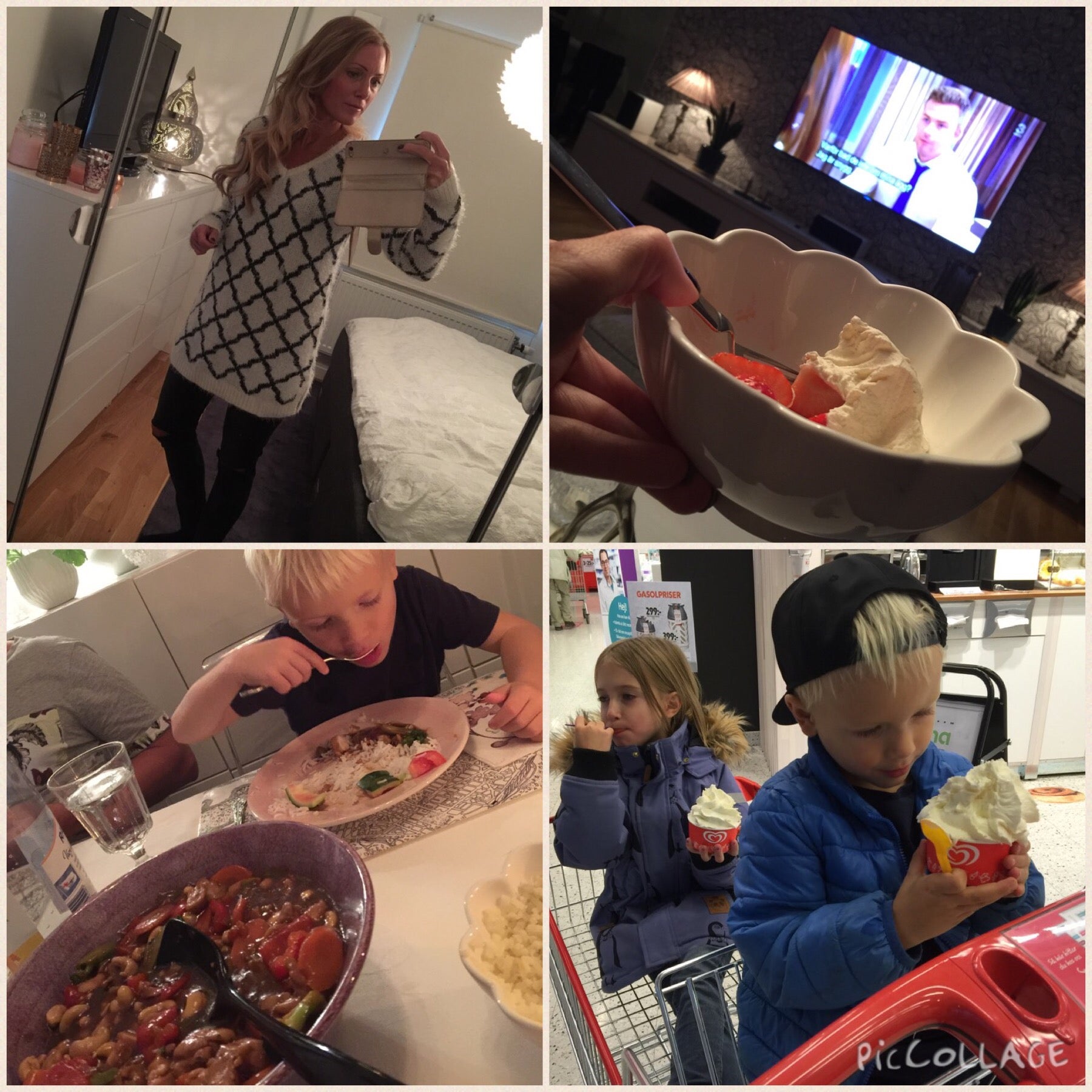 Handlat med barnen (vi gick med i barnklubben på Ica maxi och då fick de välja varsin gratisgrej från dagens utbud och vips satt de som små ljus och åt mjukglass medan jag kunde handla i godan ro utan att jaga nån puh! Tips tips!) Sen blev det Chicken cashew till middag – S tog om 3 ggr och O vägrade i princip smaka, lite så det brukar se ut här.