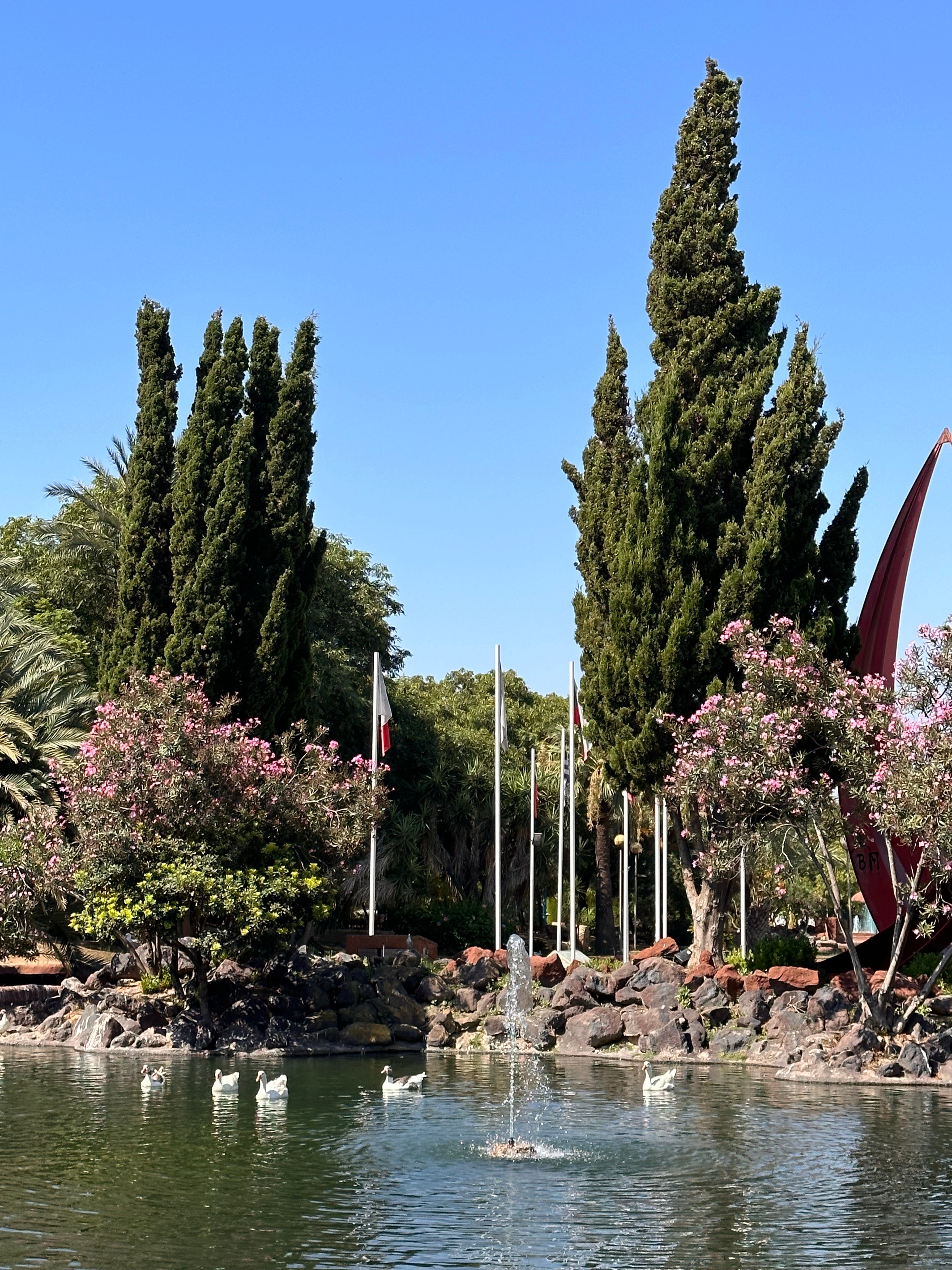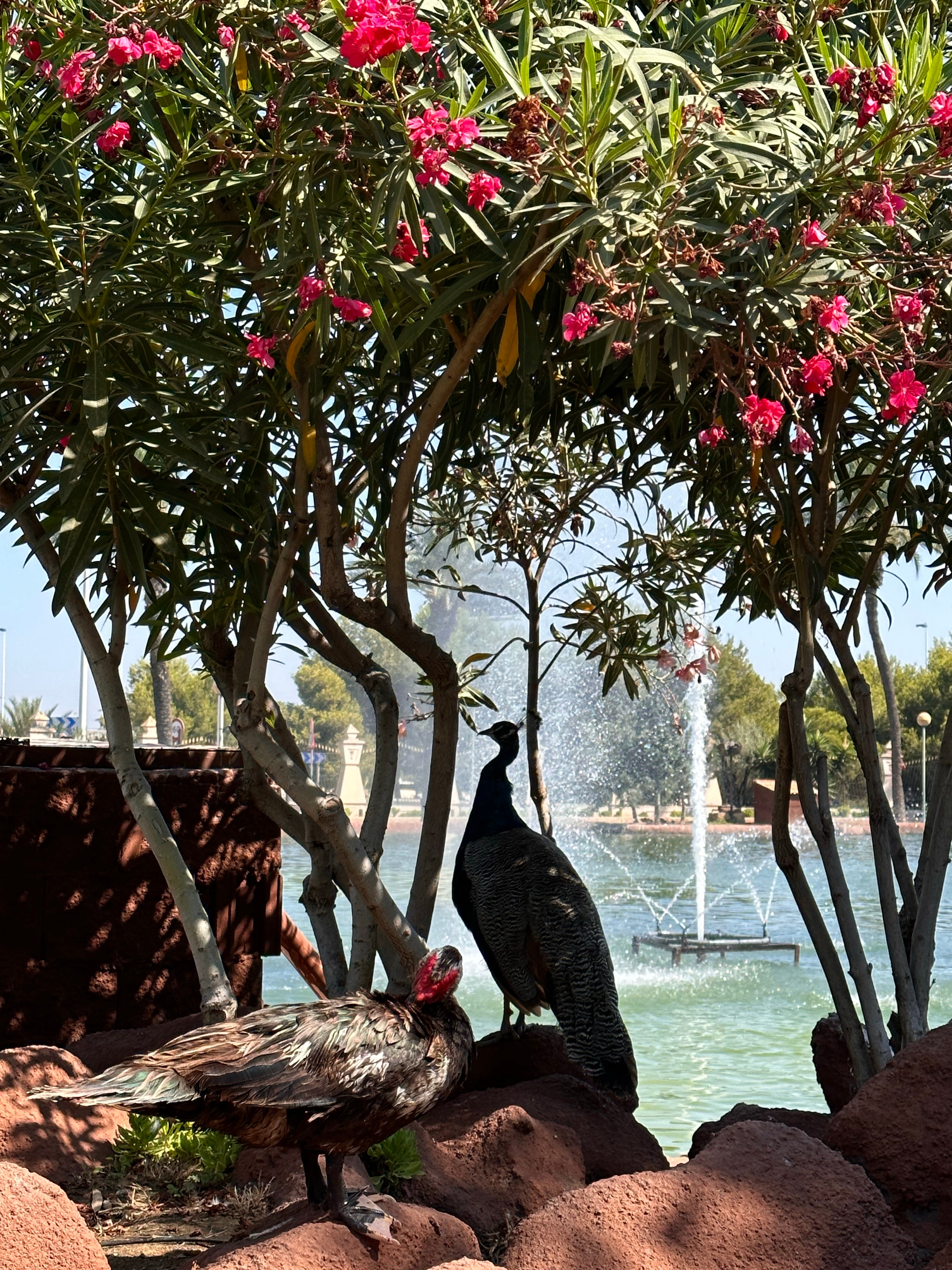 Här går en salig blandning av tuppar, svanar, påfåglar och andra fåglar omkring. Borde heta fågelparken istället 😅