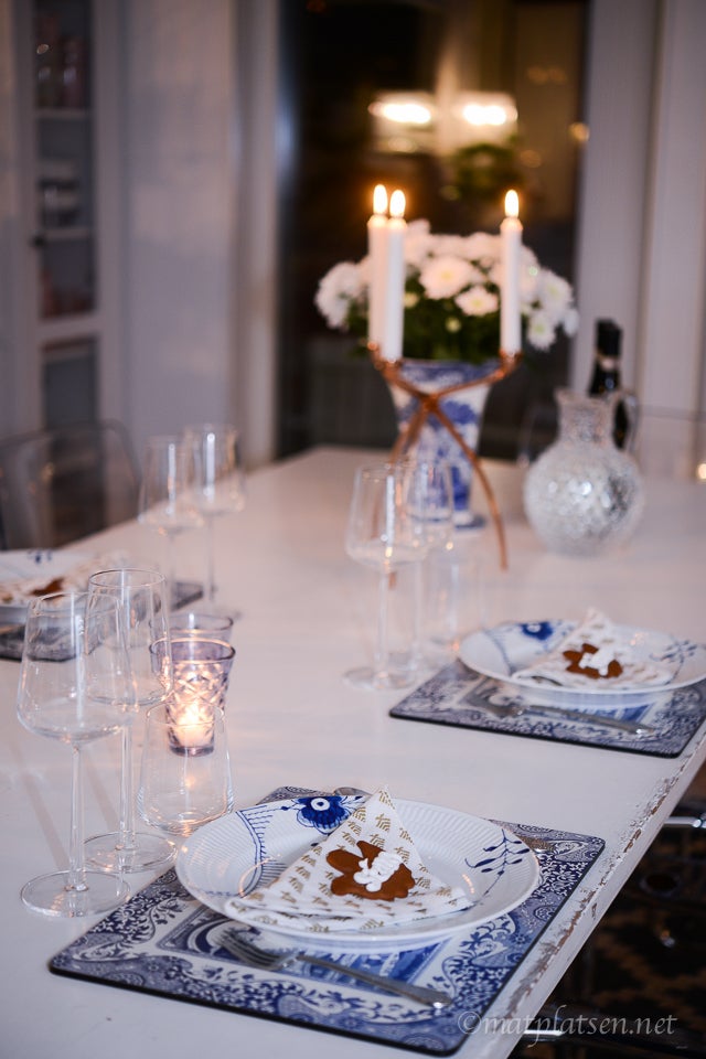 Tips i juletider – duka med pepparkakor! Jag gjorde ett gäng änglar (på färdig deg, går snabbt!) och spritsade ut gästernas namn och använde som bordsplacering. Särskilt poppis hos barnen som åt upp sina 🙂