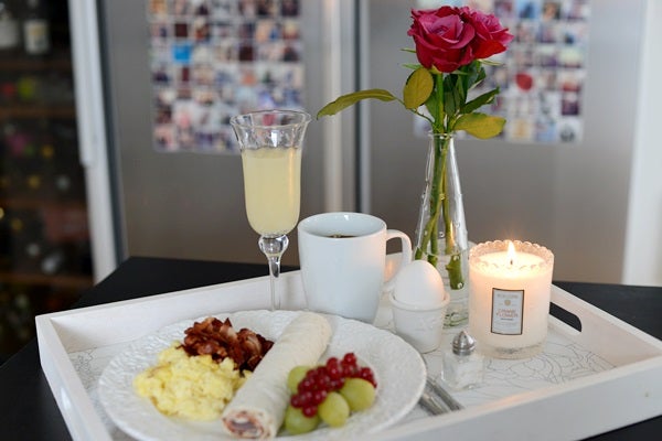 Micke staaackarn har åkt på min förkylning (ja ni vet hur sjuka förkylda män blir) så han fick sovmorgon och frukost på sängen 🙂