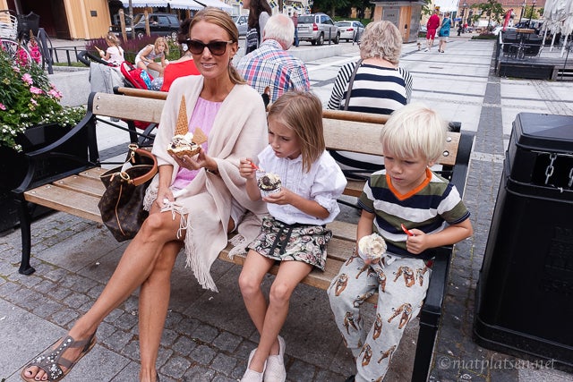 Åt Nora-glass (den berömda ni vet – grymt god!!) och strosade lite på ”stan” och hamnen. Har fått så många tips om en inrednings/modebutik där men blev riktigt besviken på den måste jag säga. Men i övrigt var det mysigt, en riktig småstad! Sen slog vi oss ned på badet vid campingen och lät barnen bada och leka av sig.
