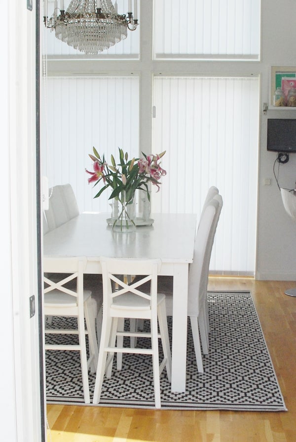 4. Jättefin matta! Skulle du vilja ta lite mer bilder på ert bord och på stolarna. Är i övertalningsfasen och hoppas innerligt att maken går med på att måla om det då skulle bilder på ert bord vara toppen för att visa hur fint det blir!