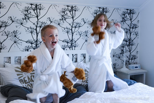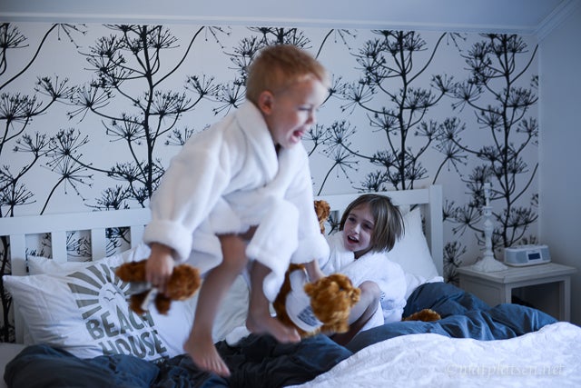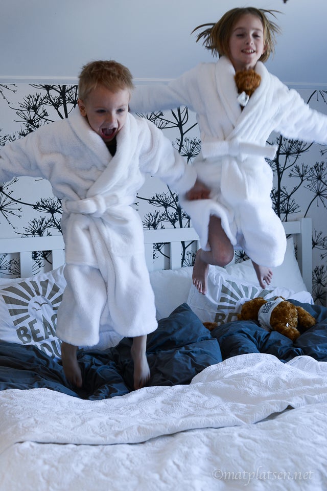 Här stod trädgårdsfix och skåprensning (och femtioelva turer till tippen) på dagens schema – så vi passade på att dra oss in i det sista, haha. Nybäddat i Beach House lakan (som är så f-a-n-t-a-s-t-i-s-k-t sköna) och även klädda från topp till tå i Beach House dagen till ära 🙂 Jag och Olivia i matchande nattlinnen, Sebbe i gosigaste tofflorna och båda kidsen har fått varsin fluffig morgonrock – såna jag och Micke har sen tidigare och älskar! Finns nu i barnstorlek alltså.