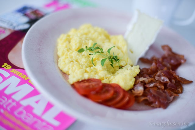 Äggröra och bacon är mitt måste när jag lägger om kosten. Bort med kolhydraterna men äta gott, sen kan man lägga till lite kolhydrater igen efter några dagar men just nu blir det ganska strikt för att komma i gång. Sen är jag ju ingen nitisk lchf:are på något sätt, det kommer bli mat ni är vana vid här inne och godsaker med men även ett och annat låg kolhydratsrecept (och vill man ha kolhydrater till så är det ju bara att lägga till pasta/potatis/ris eller vad man vill ha – ja som vanligt helt enkelt).