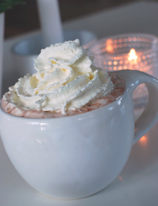 Är det spritsgrädde på flaska du använder eller hur får du grädden så där fint spritsad på den varma chokladen??