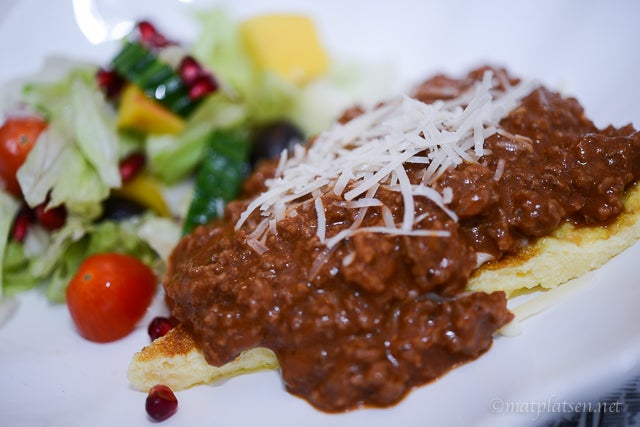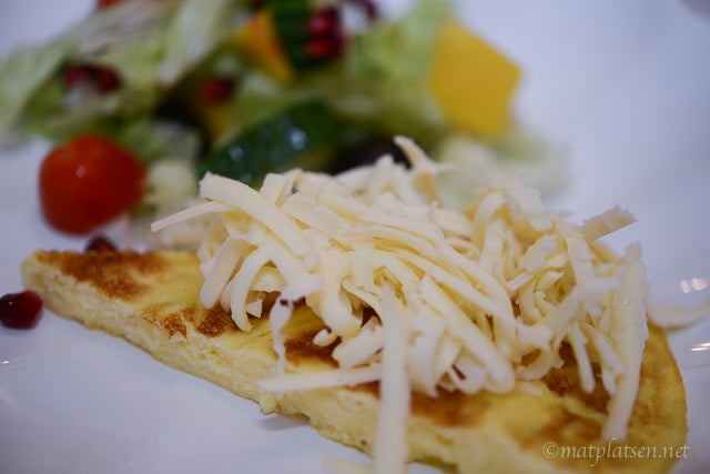 Ta sedan en bit omelett, lägg på rikligt med riven ost (gärna gräddost) och klicka på köttfärsröran. Toppa med lite färskriven parmesanost och servera en god sallad till. Mmmmm så gott detta är med osten som smälter under köttfärsröran, yummi!!