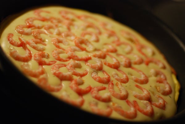 Mer påskmat. Mickes måste, omelett. Numera mitt måste också, det är ju sååå gott! Favoriten är med räkor på men annars är en champinjonstuvning gott också.