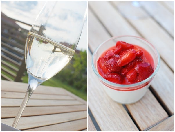 Och till dessert en helt fantastiskt god kombo med vit chokladmousse med limemarinerade jordgubbar (som jag bara måste få receptet på!!).