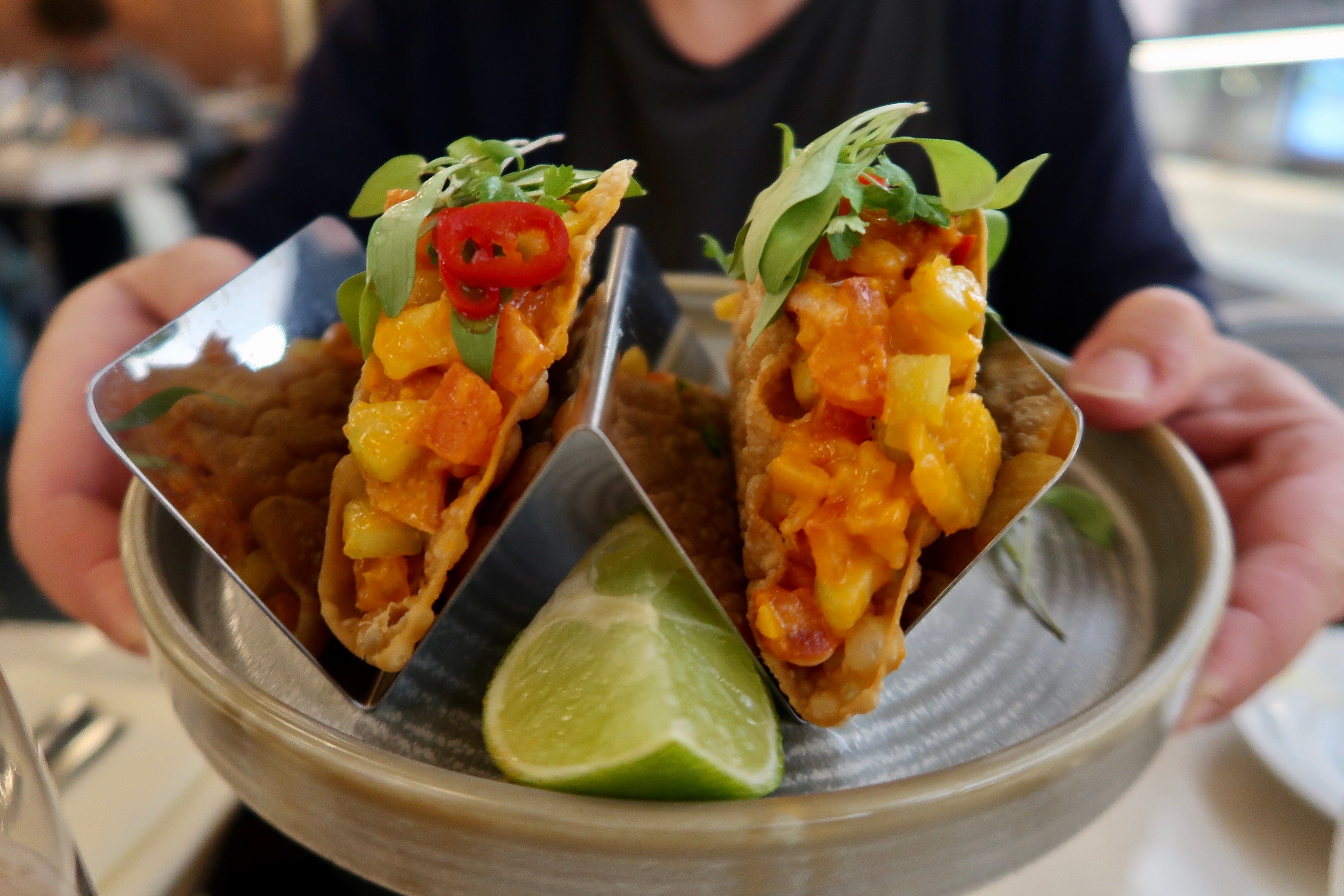 Vi flög från Arlanda denna gång och startade semestern med en middag på flygplatsen (och mitt glas champagne fick jag äntligen uppe i luften sen medan resten av familjen snarkade i kapp. Det var ju champagnens dag!) Brukar äta på Pontus in the air, mat-garanti inom 15 min (om jag inte minns fel) och rätt god mat men dyrt som tusan som det ofta är på flygplatser. Gillar dock bäst deras frukost. Nu blev det en skagentoast, hummertacos och pommes. Var bara sugna på något litet och delade.