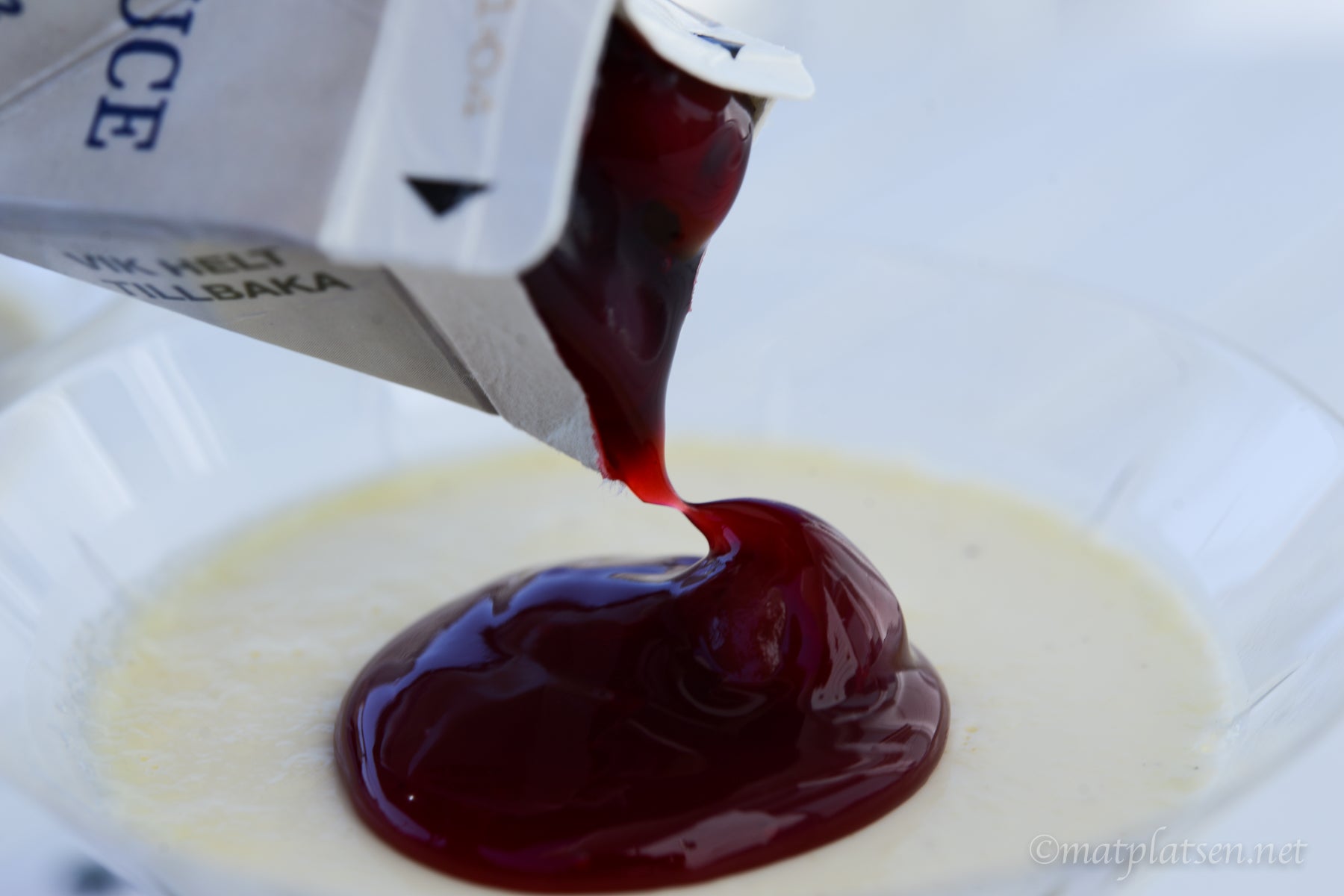 Gjorde själva pannacottan på mellangrädde istället för vispgrädde, lite fräschare och mindre fet och det blev jättebra. Precis lika gott.