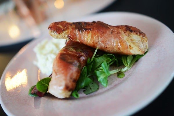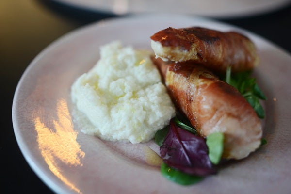 Lägg upp kycklingen och moset på tallrikar och ringla tryffelolja över blomkålsmoset.