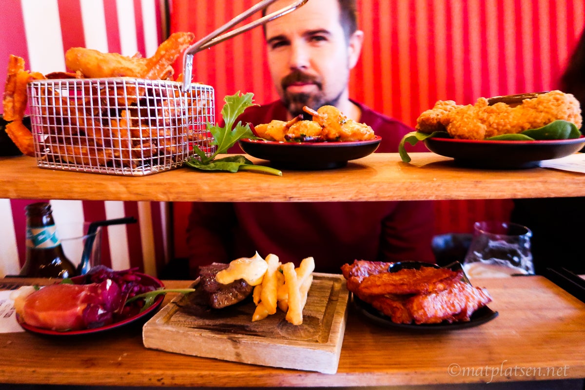 Hoppas ni haft en skön söndag. Påskdagen och allt, svårt att hitta en öppen restaurang upptäckte vi som inte direkt var ute i tid med att boka något. Letade igenom halva stans utbud och det slutade med varsitt bord på Pinchos (ett eget till barnen och ett till oss vuxna) redan vid 16. Åt en rejäl och lång frukost/brunch så det blev ju perfekt i tid ändå.