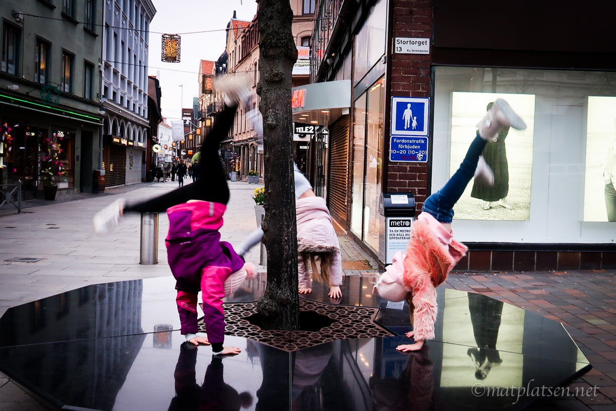Tog en promenad över stan och vaggade ner maten. Gymnastiska övningar på torget, de yngre betydligt spänstigare än de stora.