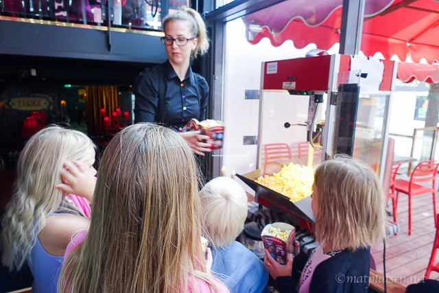 Vad pysslar ni med i vårt gråmulna sommar-Sverige? Vi äter och slappar mest, hehe. I förrgår for vi in till stan och åt på Pinchos. Kul koncept och gott. Testat det ett par gånger i Örebro också, skiljer sig lite i menyn men annars samma upplägg. Här fick man dock popcorn i entrén, mkt uppskattat av småttingarna.