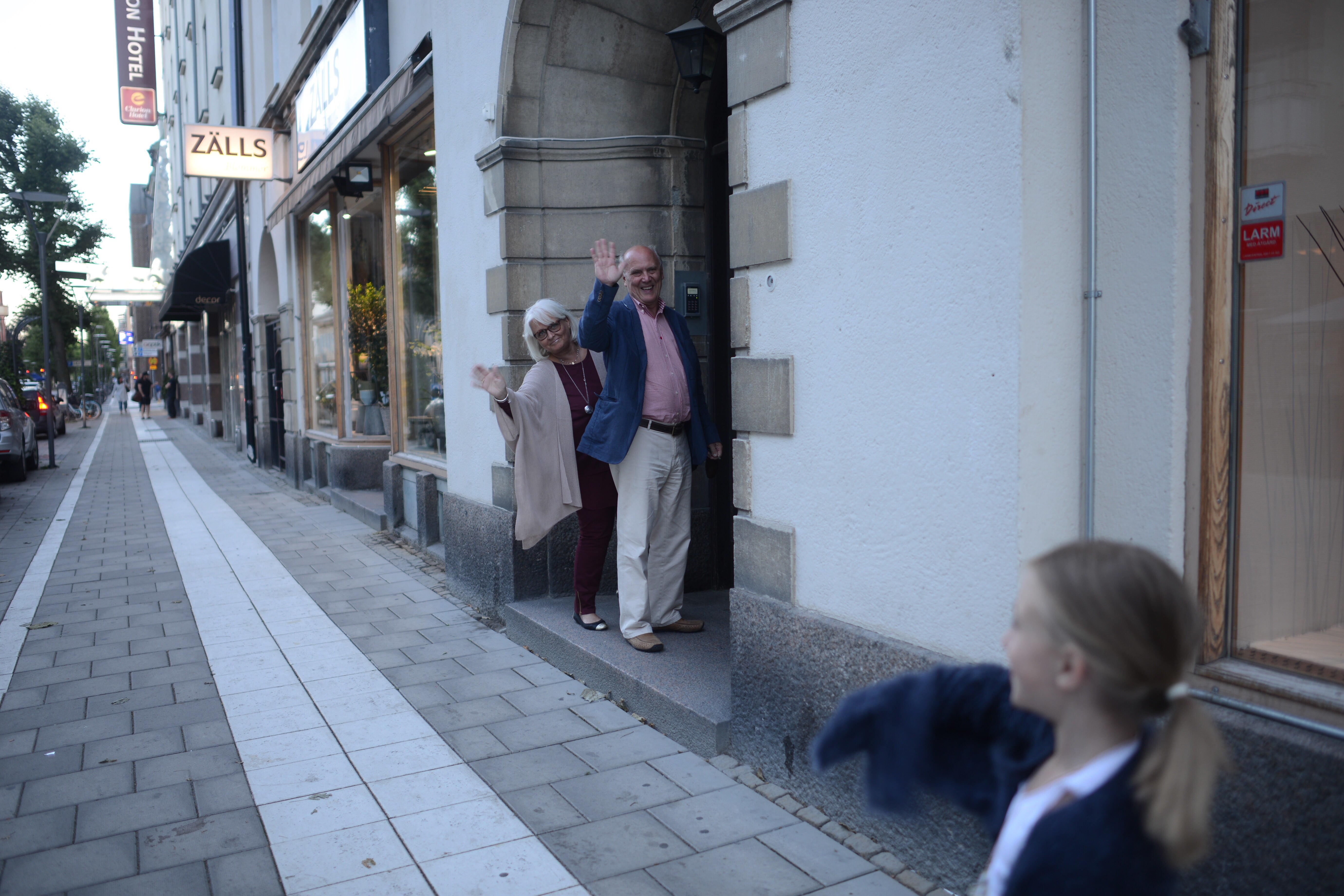 Vinkade av mamma och pappa som bor på stan och tog en taxi hem (bussen ut till oss går bara 1 gång i timmen, en av de största skillnaderna när vi flyttade hit från Stockholm).