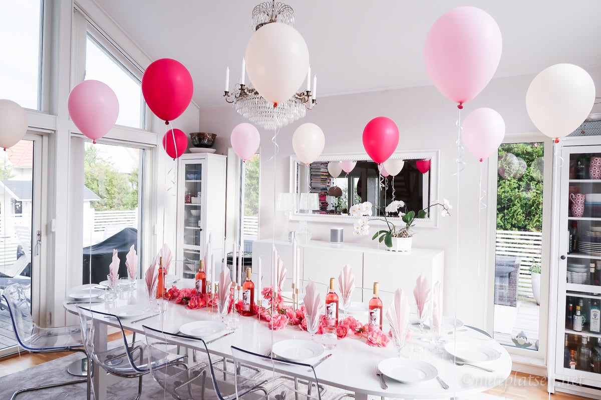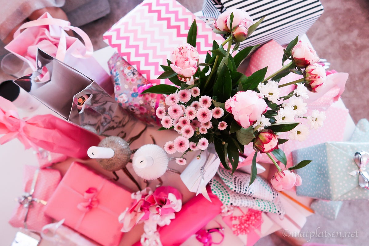 Mera bilder från helgens tjejfest lovade jag! Jag gillar ju temafester som ni kanske vet 🙂 Behöver inte vara så avancerat tema. Till sommarfesten med grannfruarna bestämde vi oss för tema rosa. Glad och somrig färg som finns i de flestas garderober. Ballonger är så tacksamt och effektfullt att pimpa med tycker jag, särskilt heliumballonger. Blev himla fint! Hittade de härliga blomgirlangerna med lampor på Rusta (rea) och de lös sååå mysigt på kvällen när det mörknade ute. Godis köpte jag i bara rosa och la i en skål och mina ljusbollar (adlink) från terassen plockade jag in och satte på rosa ljus (man kan välja färg). Och till fördrink serverade jag ljust rosa bubbel med sockervadd i, fint och gott!     Sen bad jag alla tjejerna maila in varsin fråga med rosa tema till en tipspromenad. Som tex vad betyder Barbapappa på orginalspråket franska, hur många killar heter Rosa i Sverige, vad innehåller drinken Rosa Pantern. Osv. Och sen satte jag upp dem över hela tomten/huset så fick de röra på sig lite. Kul frågor!     Till middag körde vi knytis med tema tapas. Och för att det inte ska bli orättvist och någon får en dyrare uppgift än nån annan så bestämde vi att rätten skulle kosta 250 kr oavsett om man hade skaldjur, dessert eller sallad på sin lott. Sen fick man fria händer med uppgiften utifrån den budgeten (som tex ”kött”, ”vegetariskt”, ”snacks” etc) Dessutom tog alla med sig en flaska valfri rosa dryck utöver detta som vi stoppade i champagnehinkar med is så fick man ta lite vad man ville under kvällen (till maten körde vi Carneval som jag skrev om tidigare HÄR, tyckte det passade så bra!)       (Den stora vita jättekrukan i metall såg jag i något inredningsresportage att de fyllt med just drycker och is och tyckte var så läckert, finns för billig peng HÄR (adlink)) Efter middagen var det dags för julklappsspelet (eller vad man nu ska kalla det mitt i sommaren :)) Alla hade med sig 2 paket med rosa innehåll för ett sammanlagt värde av 150 kr. Sen turas vi om att slå en tärning och man får ta ett paket ur högen om man slår en 1:a eller 6:a. När alla fått 2 paket var så öppnar man paketen. Sen sätter man klockan på 10 minuter och fortsätter spela och denna gång får man ”knycka” från de andra (och byta med något av de man har) tills klockan ringer och de två paket man har då får man behålla. (Detta är den ”snälla” versionen, om man vill kan man köra utan att man ska lämna något av sina paket i byte utan kör på bara och då kan det sluta med att några får massor med paket och några inga alls.) Jag hade köpt ett rosa tårtfat med lock och ett sött rosa/rosé-armaband. Slutade med att jag fick tårtfatet och en gammelrosa fin fleecepläd!     Sen var det sång och dans och dessert och mera dans och tjejsnack framåt småtimmarna för de som orkade vara uppe. Såå himla kul kväll!     KRAM
