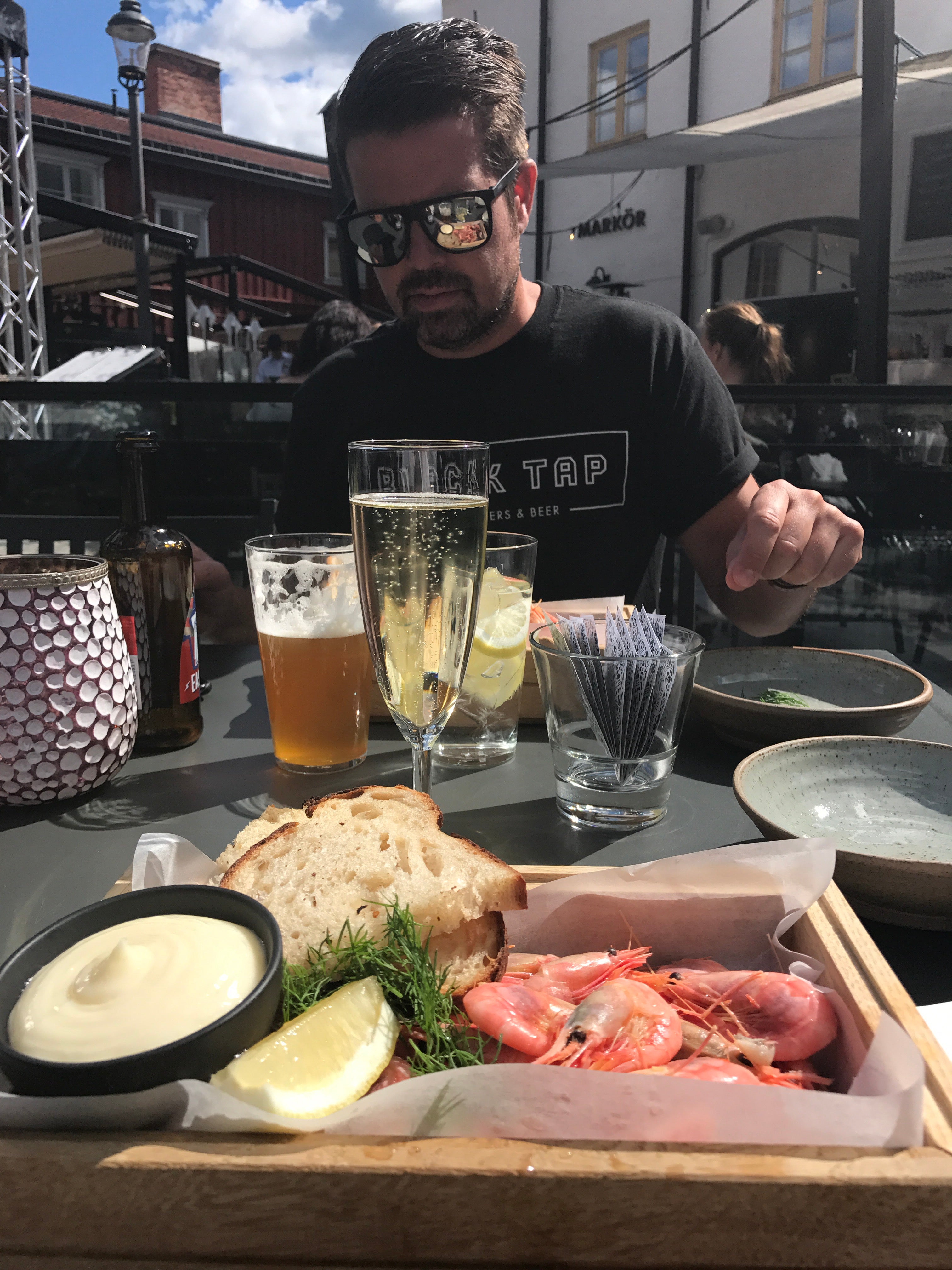 Kors i taket men i dag blåser det knappt (det blåser annars fasligt mycket i vårt område så dagarna man kunnat sitta ute är lätträknade iom denna kalla sommar) och jag har precis slagit mig ner på takterassen med en hög mattidningar att gå igenom. Vi har varit på vift hela dan och letat presenter till Olivia som fyller på fredag. Vågar inte visa ännu vad vi köpt, hon läser här ibland 😉 Lunchade på Makeriet i solen  (plus filt, gnäll gnäll men kan det liksom inte bli varmt nångång?) och åt räkor. Mysigt! Blev barnfria över natten så funderade ett tag på att gå på bio men blir nog hemma och grillar istället. Micke är ute och kämpar på med altanen (sioox) nu och jag ska slå in paket och städa. Det ena roligare än det andra 😉