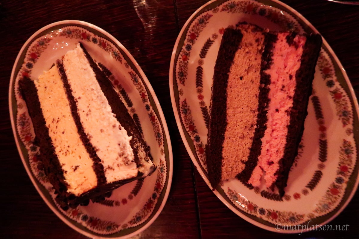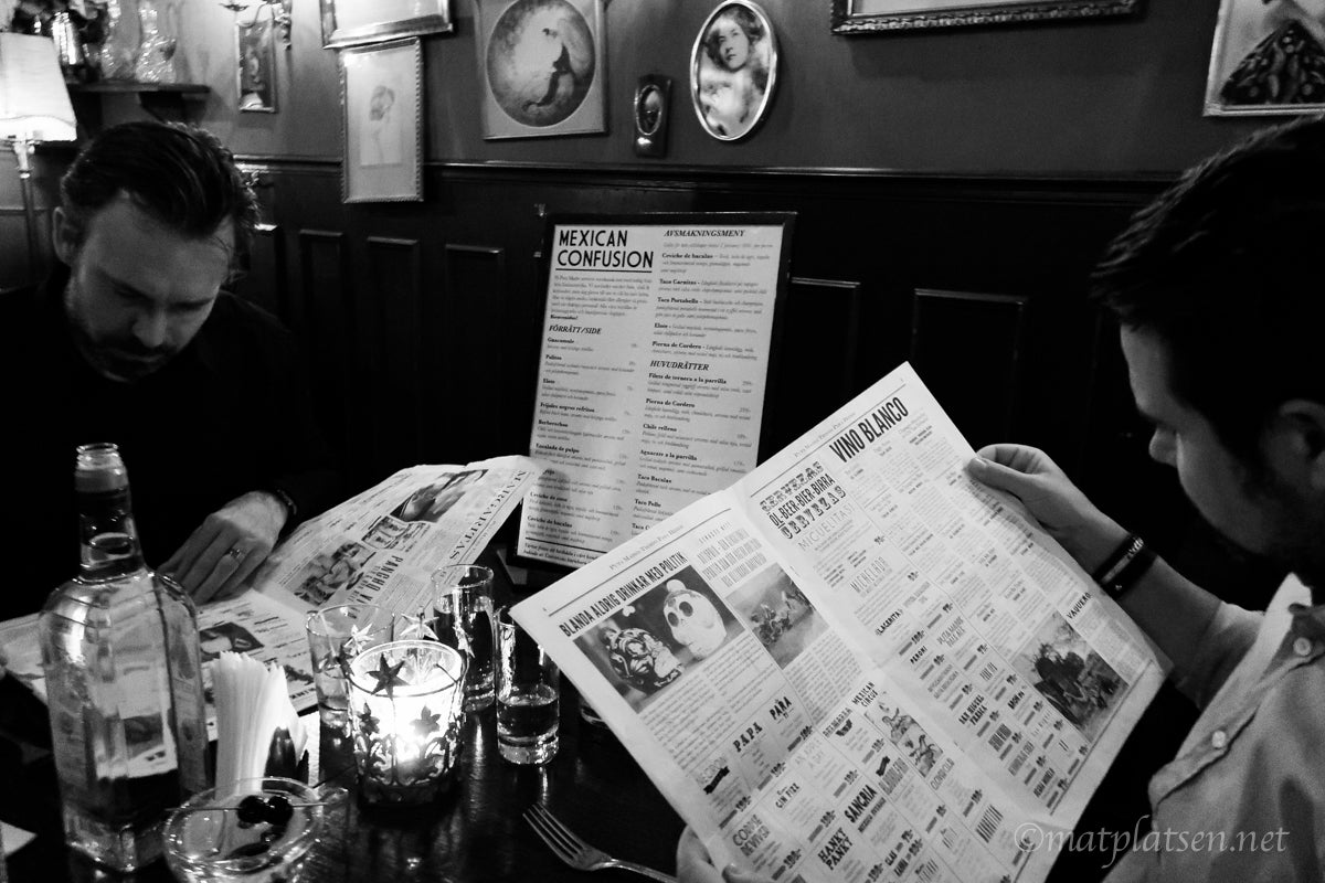 Dessutom fanns en tequilameny utan dess like, killarna provade några sorter och blev riktigt förtjusta. Själv kan jag smaka mycket men inte ren tequila, ryser av bara lukten. Till dessert delade vi på två slices tårta och vaggade hem mätta 🙂