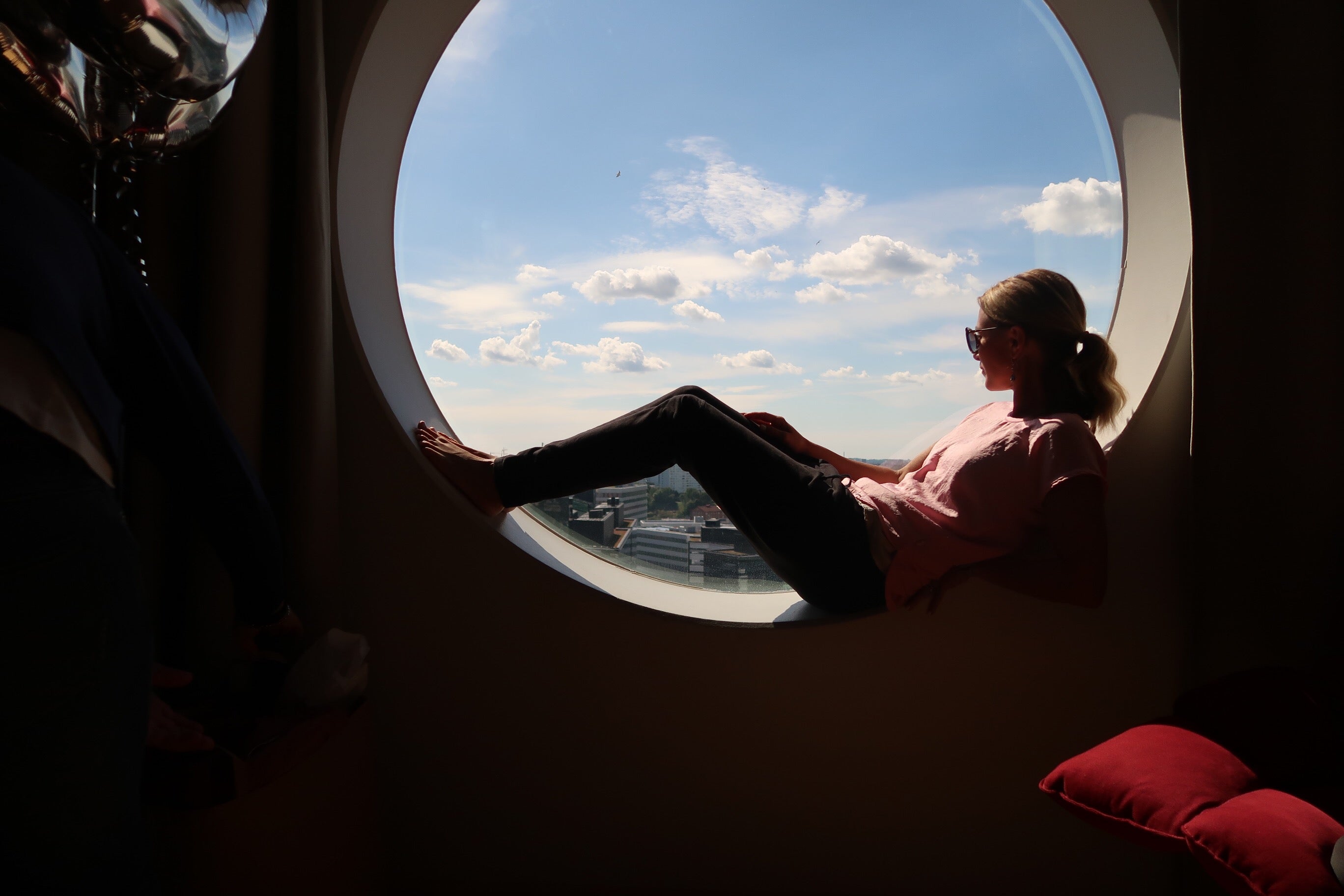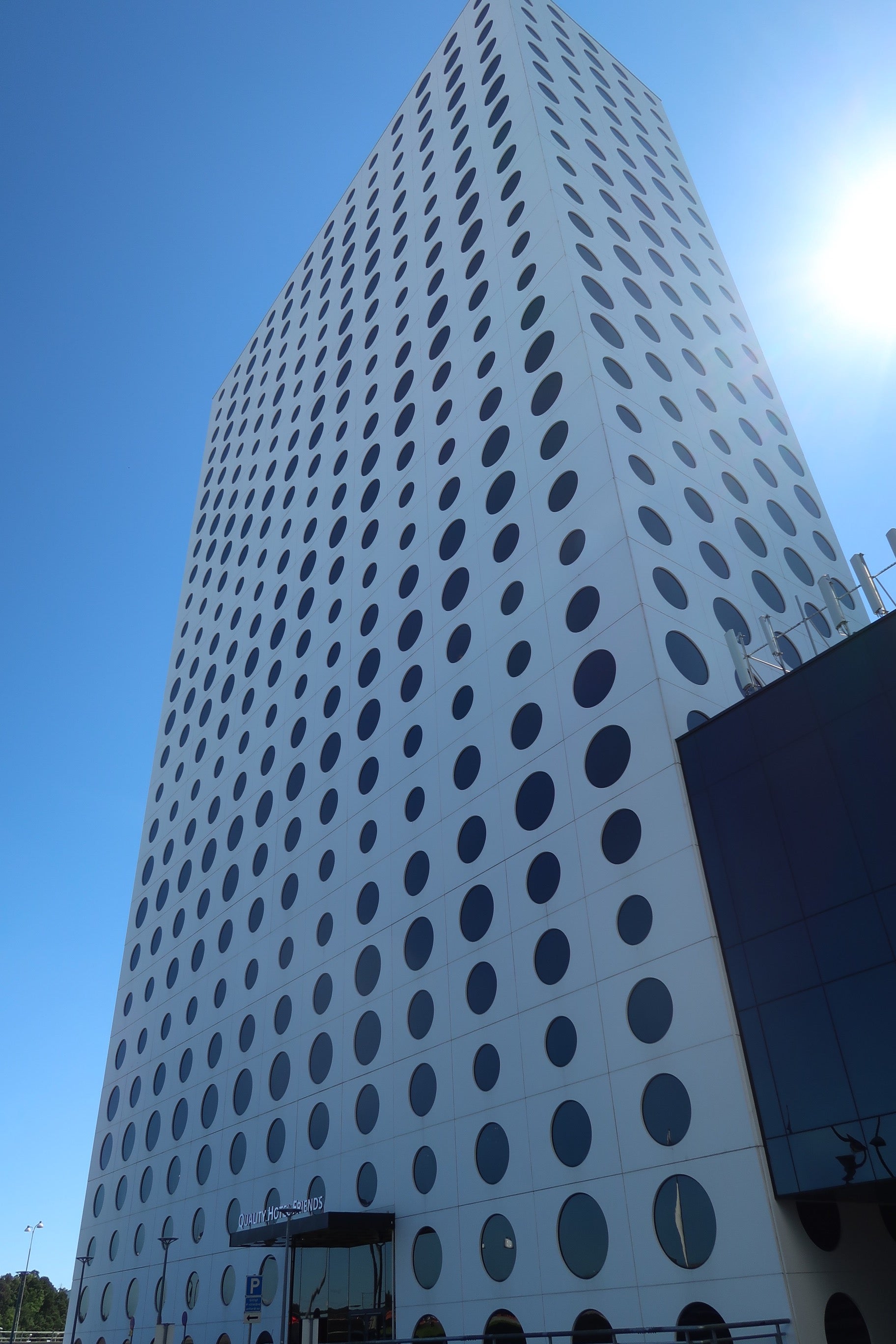 Riktigt fräscht och snyggt hotell med runda fönster. Vi bodde på vån 23 och hade hisnande utsikt!