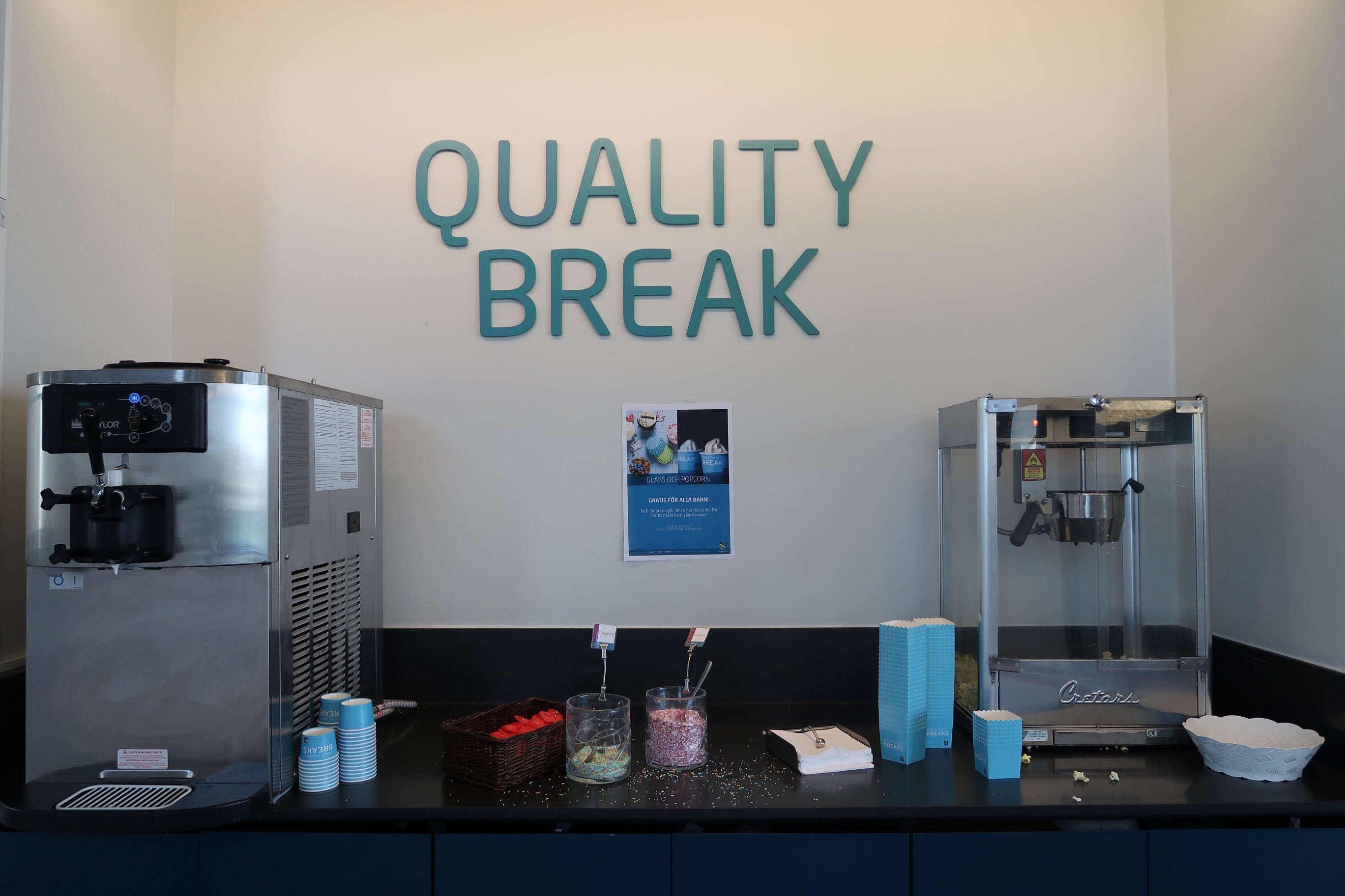 Under sommaren har de gjort om plan 5 till ett lekland, där fanns hoppborg, studsmatta och en massa leksaker och mjukglass och popcorn att ta själv. Gissa poppis!