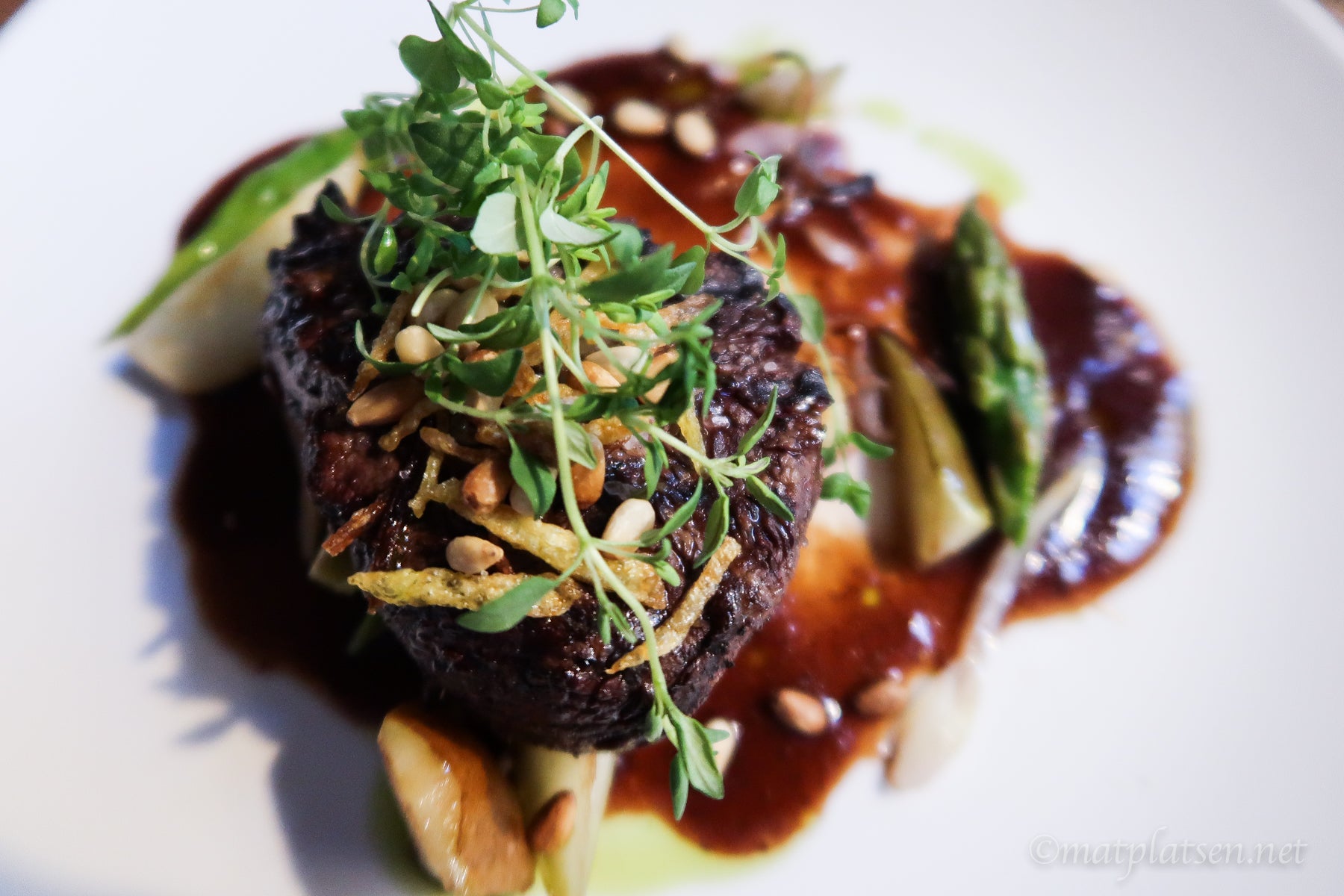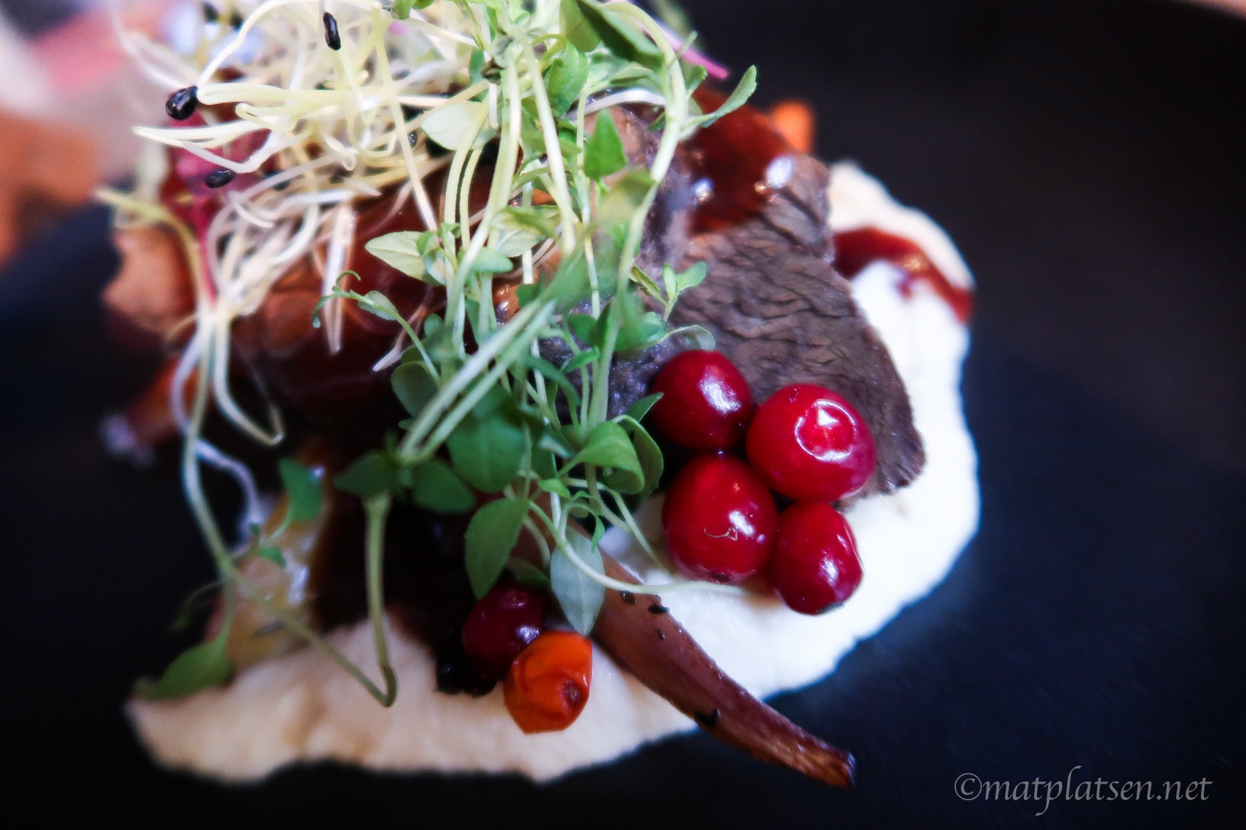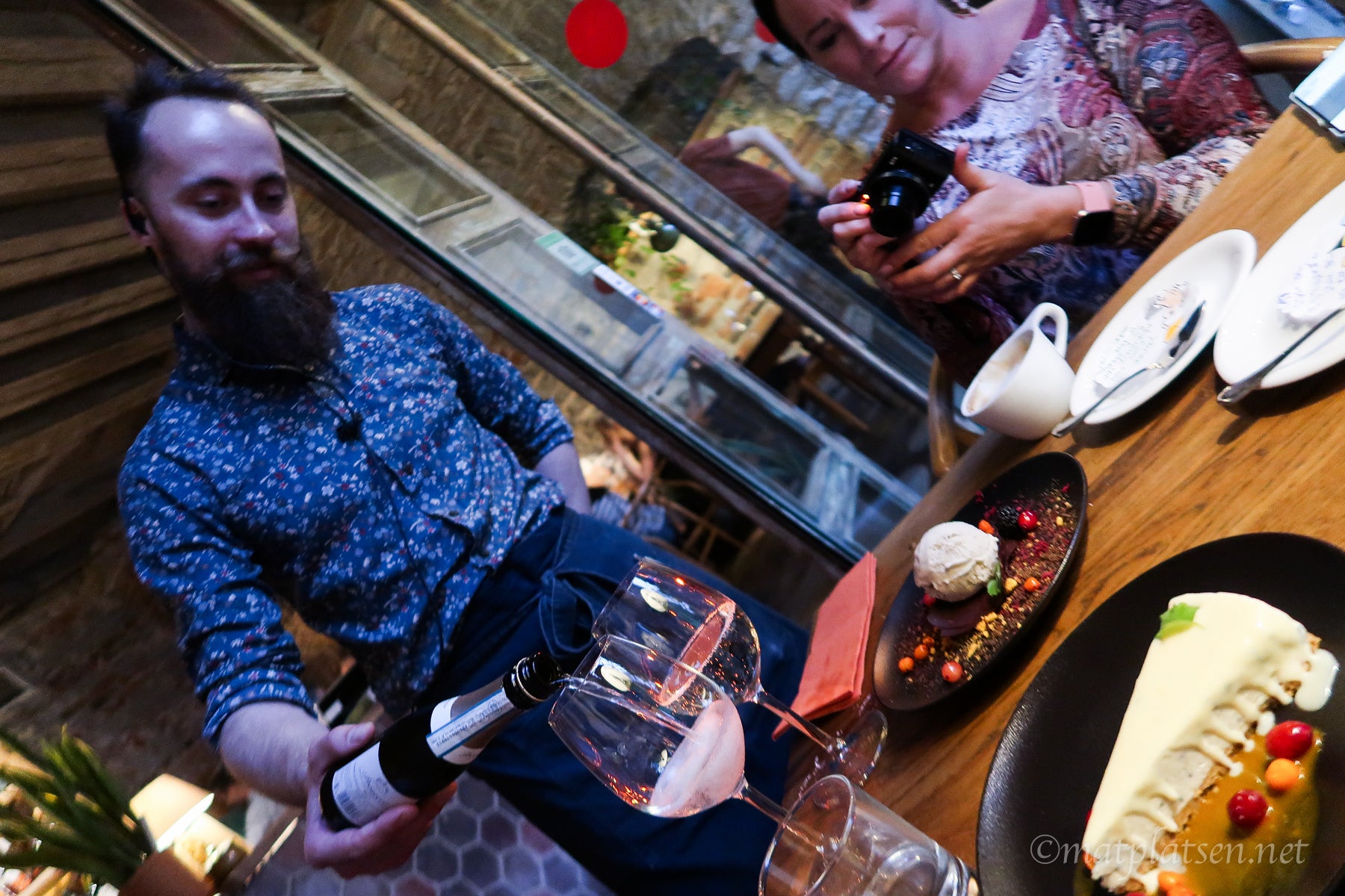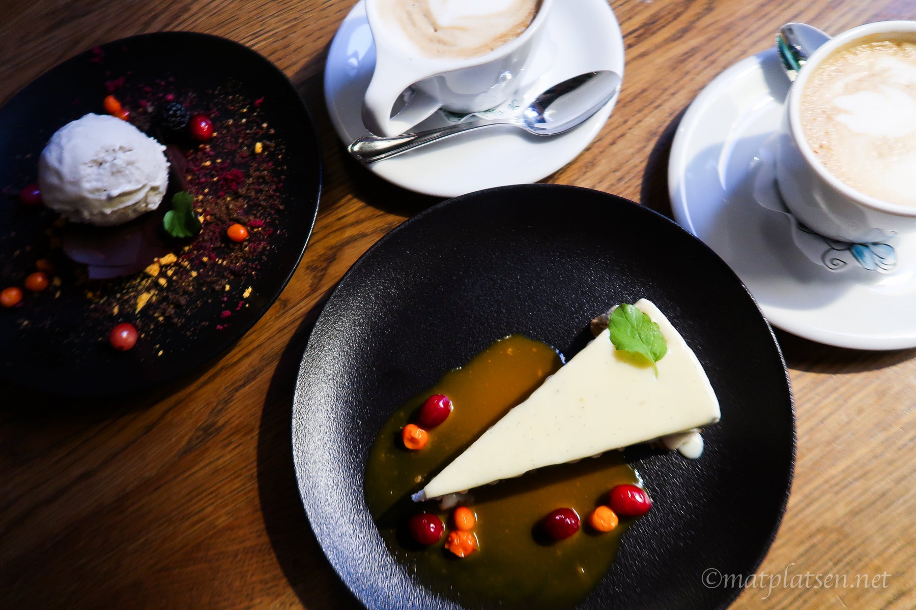 Var redan bra mätta och tänkte ta något lätt men när servitören pratade så gott om den hyllade oxfilén och fantastiska långsökta älgen så råkade vi visst beställa det. Vi är inte så svårövertalad när det vankas något gott. Delade på en gratinerad getost med bärsås först som man dessutom hällde en varm grädde/sås på så osten smälte ännu mer om man ville, gott! Och kötträtterna var ju jättegoda. Var så mätta så vi funderade på att rulla ner för nedförsbacken hem men man har ju alltid plats för dessert av någon konstig anledning 🙂 En cheesecake gjord på bluecheese valde jag. Lät så skumt så var tvungen att testa. Jättegott var det!!! Salt och sött om vartannat.