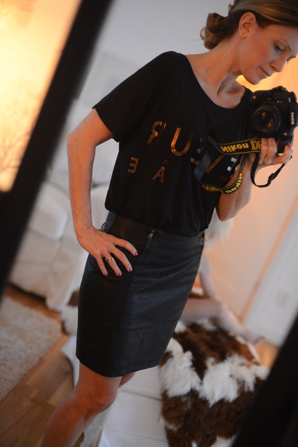 Har ni hittat nåt kul på rean? Jag hittade något jag letat efter länge, en snygg (fejk) skinnkjol med perfekt passform! En sån man kan ha blusar och toppar nedstoppade i, som inte är för tajt och korvar sig eller stor och vid. Sååå glad över denna! Ett fynd för 280 kr på rean! (finns HÄR) (har strl 38 på min). Sen fyndade jag 2 st t-shirtar från Gestuz, en vit och en svart med text i koppar. Såå sköna!