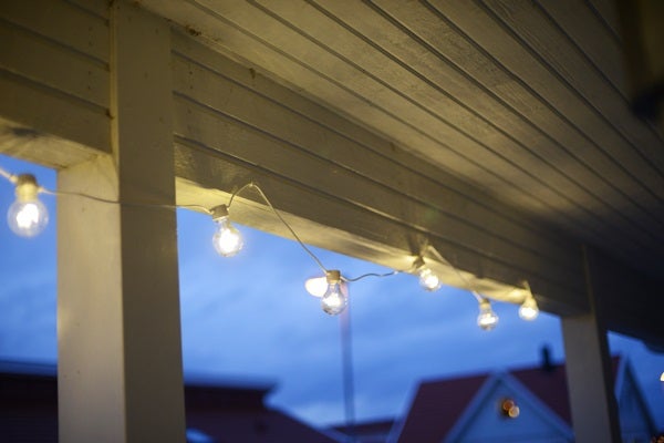 Har nog inte visat vår söta lilla bulliga ljusslinga? Den hänger lite slarvigt framför ingången och är alldeles lagom. I sommar snurrar vi den i paviljongen eller parasollet. Eller inomhus i trappen. Den funkar var som. Finns hos Borett.