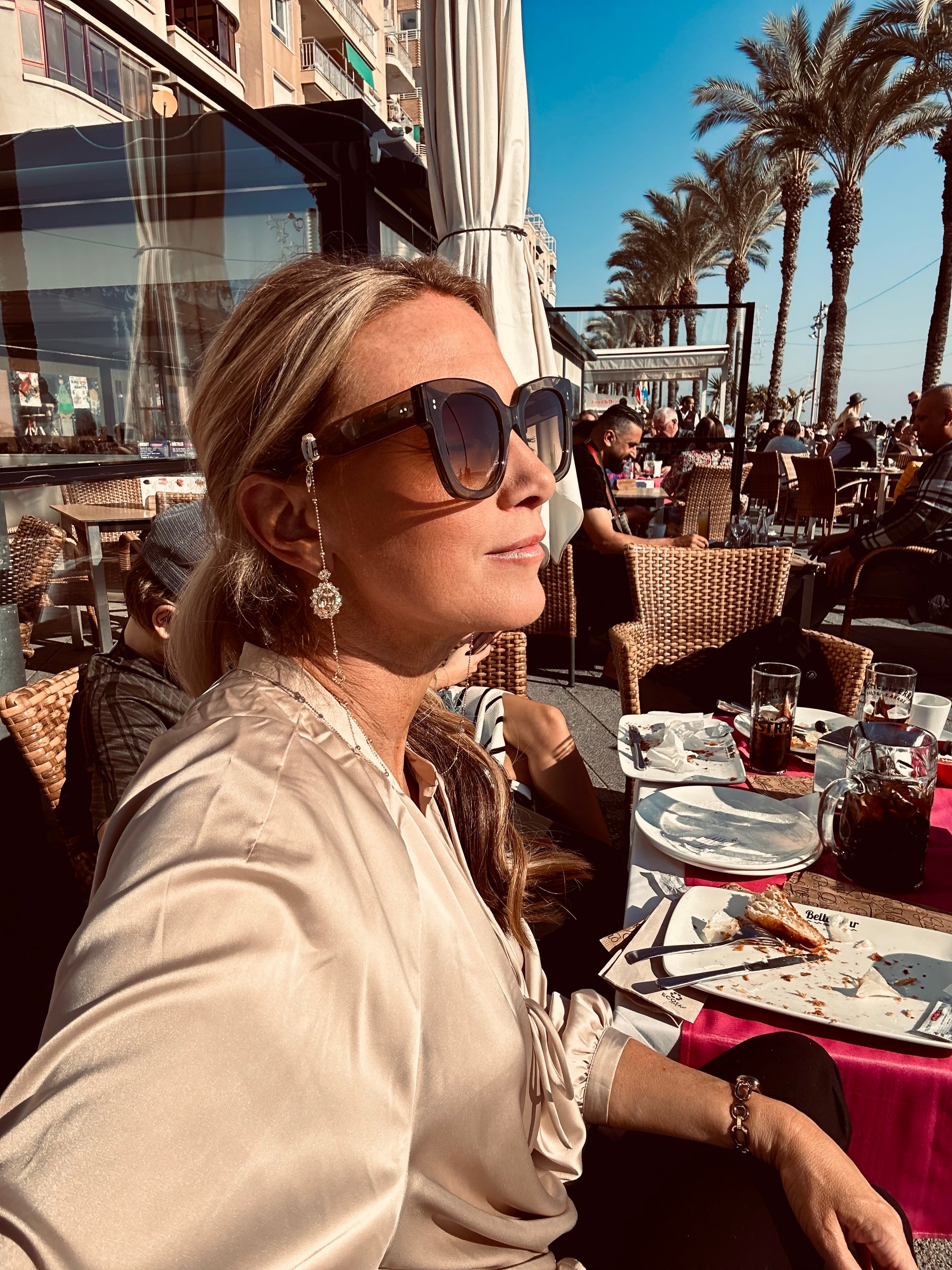 … och i solen vid havet i Torrevieja igår. (Båda dessa finns på rean nu) Vi kom iväg 🙏🏻❤️‍🩹 Så tacksam för det. Nu väntar återhämtning och semester i ett stilla lunk i vårt älskade andhål Torrevieja.