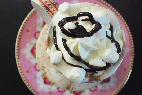 En kopp rykande het varm choklad. Gärna pimpad med vispad grädde (nästan ett måste) minimarshmallows och chokladsås (gärna O´hoy!). Mums!
