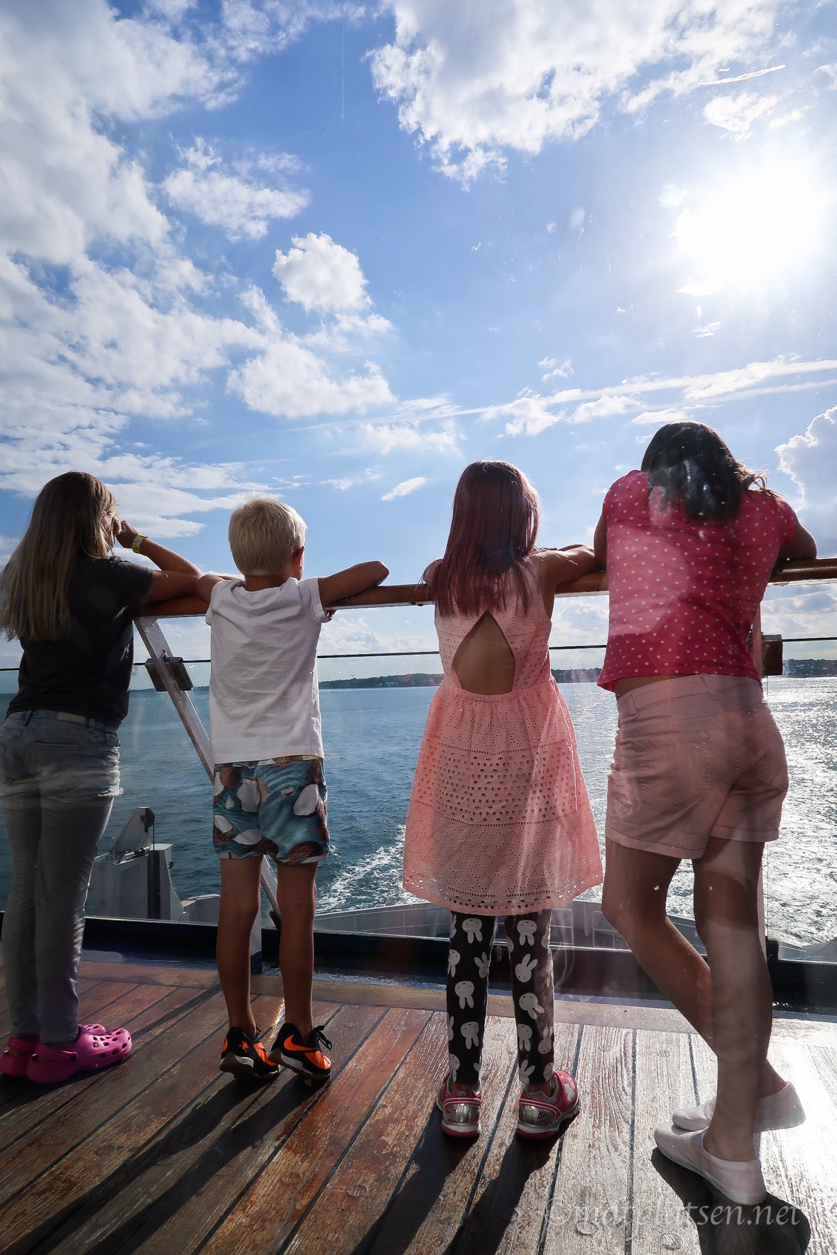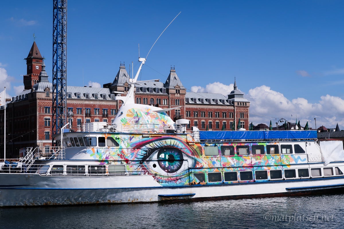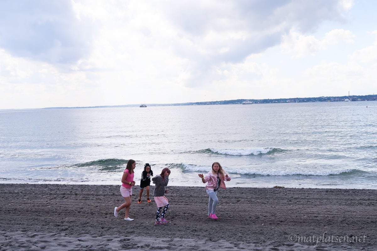 Trängdes under varsitt parasoll på blöta stolar. Lagom tills vi skulle gå kom solen. Så typiskt! 16.15 hade vi nämligen bokat plats på Scandlines Aurora för räkfrossa (och piratbuffé för barnen). Turade fram och tillbaka mellan Helsingborg och Helsingör i några timmar. Så mysigt! Gott och prisvärt (särskilt för barnen, 49 kr för biljett + buffé + efterrätt).