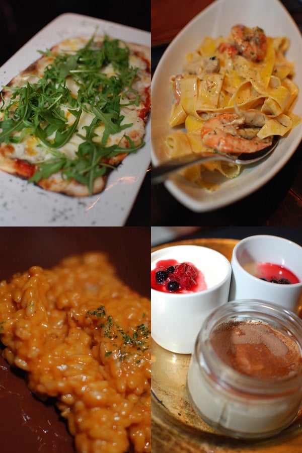 Och när ni väl är här så rekommenderar jag att ni äter kronärtskockscarpaccion med parmesan och avokado, bresaola med krämig mozzarella och absoluuuut parmarullarna med hummerröra. (Vi tog in 3 förrätter och delade) Och till huvudrätt bara måste ni testa skaldjursrisotto med scampi. Och får ni plats med dessert så ta gärna mixen med pannacotta/vitchokladmousse/tiramisu. 🙂