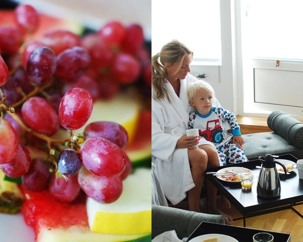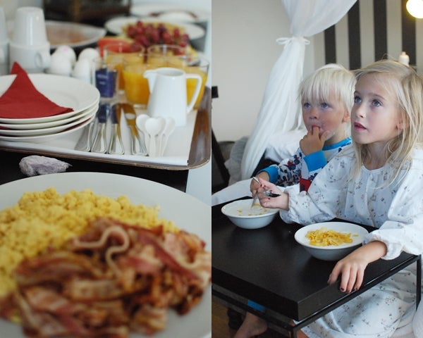 Sov som aldrig förr i himmelsängen (sleep cycle appen visade 100 % sömnkvalité, har aldrig hänt tidigare! haha) och till frukost lyxade vi till det och beställde frukost på rummet. Vi blir alltid helt svett av att jaga spralliga barn i frukostrestaurangen så vi tyckte det kunde vara värt att slippa.. (och för ynka 65 kr i roomserviceavgift så var det MER än värt det! Tips tips!)