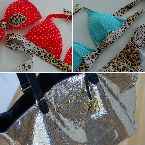 Är ju svag för leopard som ni vet.. Så det blev 3 olika överdelar med mixat prickigt & leopard med leopardbikinitrosor till och en annan bikini i blommigt. (Alla bikinidelar finns i otaliga färger och mönster, särskilt modellen som är turkos på bilden tyckte jag om så den ska jag faktiskt beställa fler av i andra färger!!) Sen hittade jag en rabbatkod som gav denna guldväska på köpet! Och en annan kod som gav 30$ off.. Älskar rabattkoder, hihi 🙂