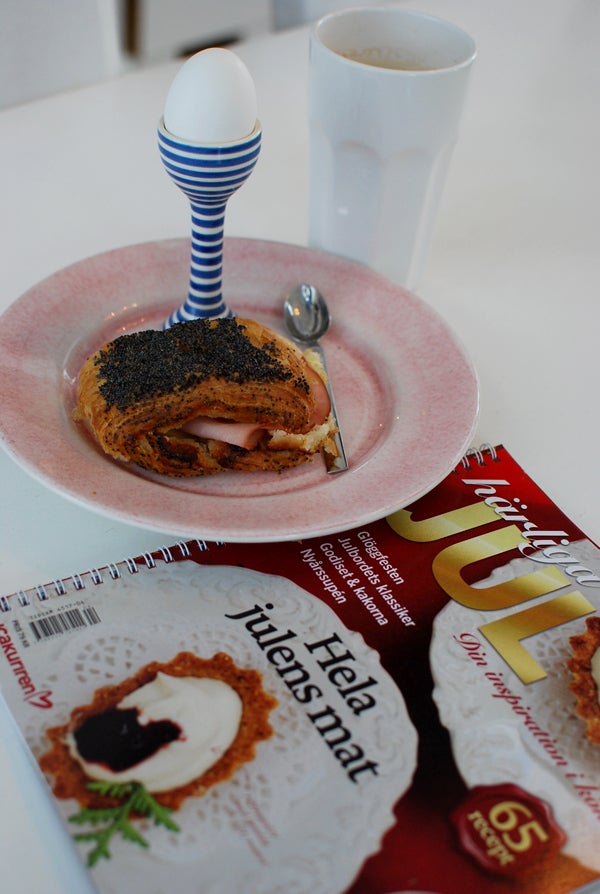 Äntligen hemma och slagit mig ned med frukost och efterlängtad latte. Ahhhhhhhhh! (fastade 12 h för att lämna blodprover i morse, aldrig varit så hungrig :))