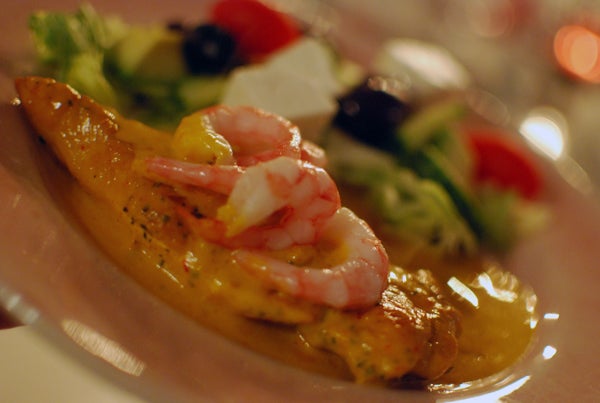 Bena ur kycklingen och skär köttet i bitar (eller stek kycklingfiléerna) Skala räkorna. Fräs saffran och vitlök i smör i en gryta. Rör i räkor och kyckling. Tillsätt créme fraiche, vin, tomatpuré, örtsalt och cayennepeppar. Låt allt koka i ca 2 min. Blanda med nykokt pasta eller servera med valfria tillbehör.