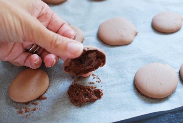 Olivia och jag bakade Macarons i går (på Kungsörnens färdiga mix. En jordgubb och en choklad). Eller ja det blev aldrig några färdiga macarons.. När de stått inne så länge de skulle plus lite till kom de ut platta som pannkakor och vägrade släppa pappret. När jag väl fick loss dem var det som ett hårt tomt skal och hela fyllningen satt kvar på pappret ogräddad. Det går säkert att lyckas med dessa på nåt sätt, hörde att flera av er gjort det, men lika lätt att misslyckas då även flera gjort det (och även vi!) så de får inget bra betyg av oss alls och hamnade i soporna.