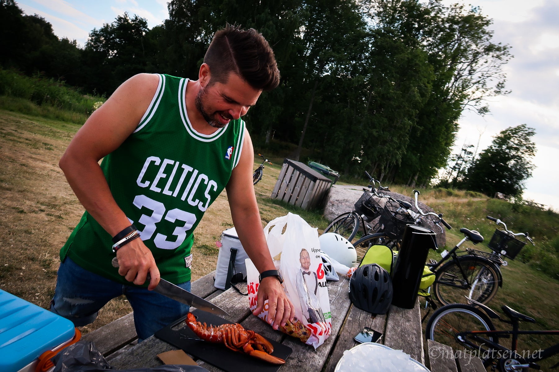 I går packade vi cyklarna med godsaker och cyklade ut i Oset för picknick. (Oset är ett naturreservat vid Hjälmaren alldeles i närheten av vårt bostadsområde). Dukade upp med humrar och bubbel vid vattnet och skålade in semestern. Hur mysigt? (inte så värst om ni frågar Micke som slogs mot myggen och längtade efter tvål och vatten och varmt var det och det ena med det andra 😉 och tjejerna blev rädda att det skulle ösregna när det mulnade på och längtade hem till Jane The Virgin på Netflix och cyklade hem efter en stund.)