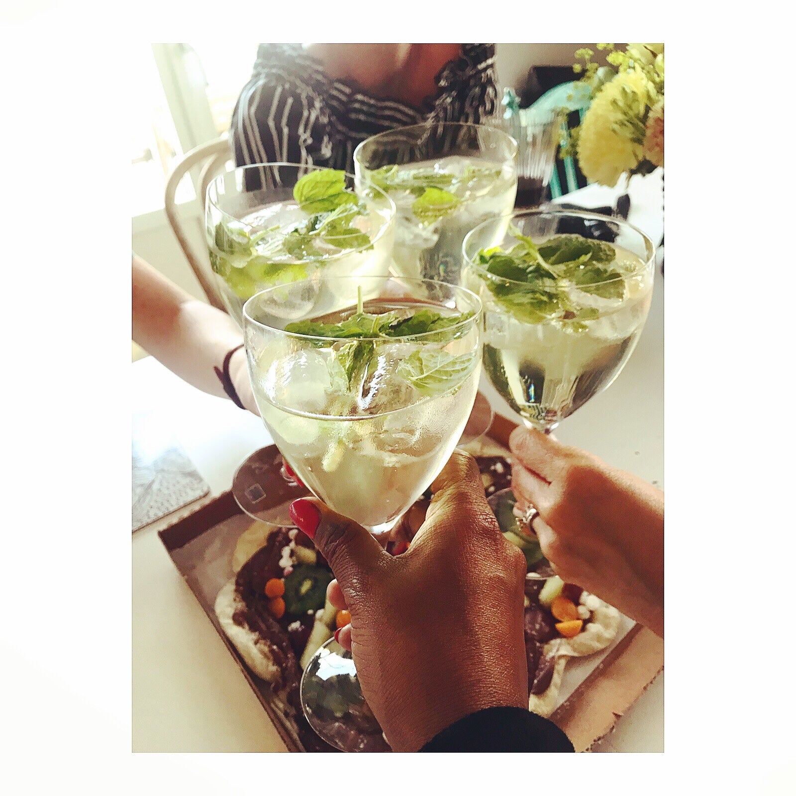 Vi hade bestämt att ta med oss ingredienser till varsin sommardrink och jag googlade i elfte timmen och bestämde mig för drinken HUGO! Hade aldrig druckit den innan, men fasen vad god den var och den gick hem hos de andra tjejerna. Recept kommer här: