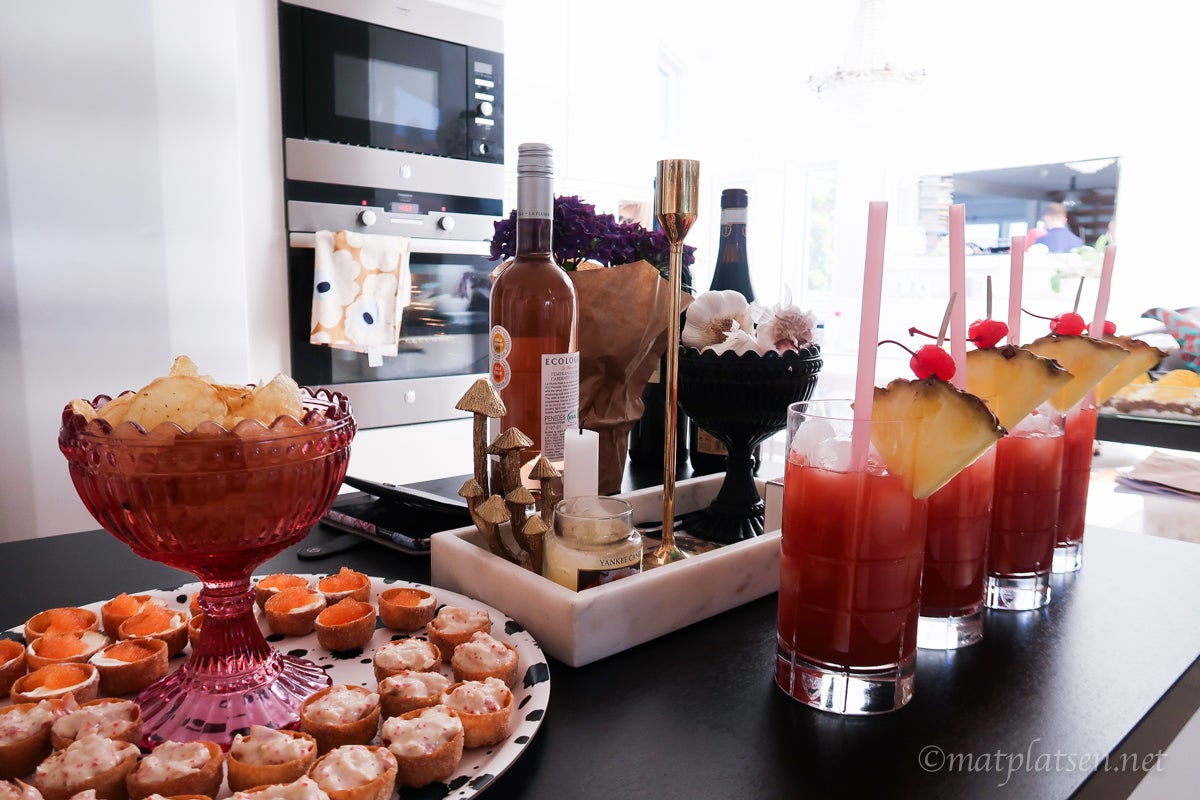In the making. Sjöälva drinken kan man blanda i förväg och ha i en karaff i kylen. Fyll glasen med is och häll på drinken alldeles innan servering.