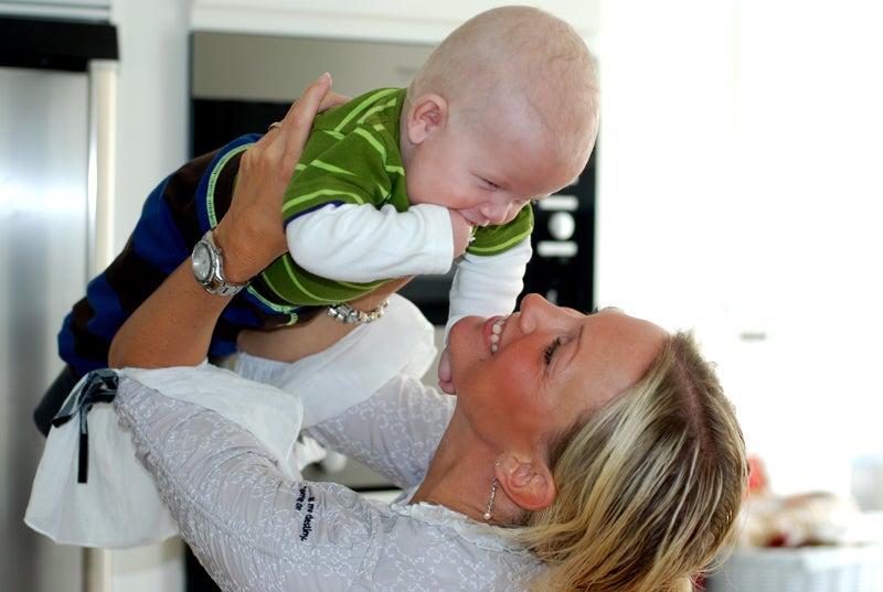 Flygande Sebbelutt. Vem behöver hantlar? 5 månader och snart uppe på 8 kg (strl 74 i kläder). S har body från Lindex, byxor från Molo. Min blus från Odd Molly (Bakers cross blouse, lite grey).