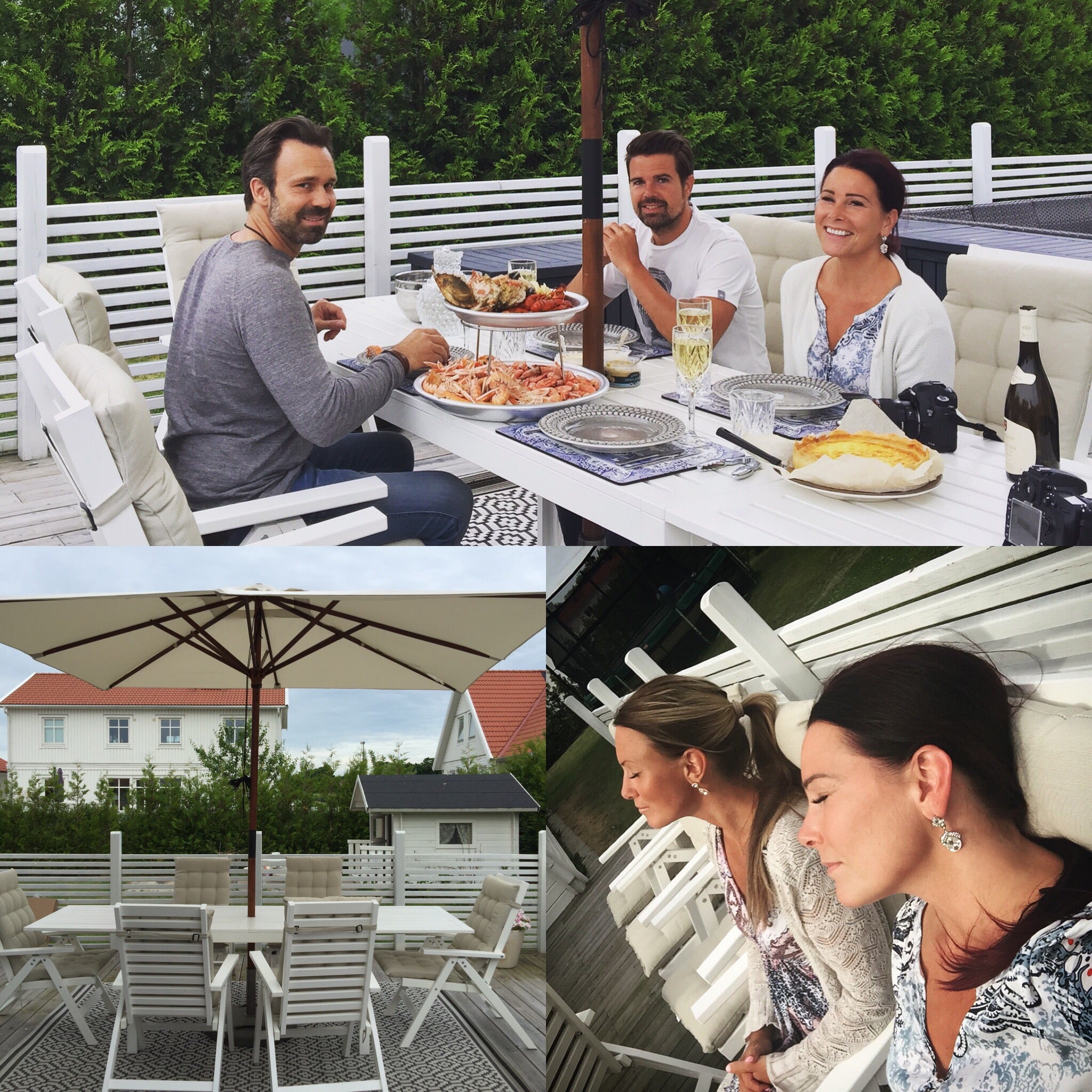 Här har vi hela huset fullt med sovande skåningar, de kom upp i går och vi körde Skaldjurskväll ute i regnet. Köpte nya utemöbler som invigdes och parasollet får 5/5, täckte hela bordet och oss (det är rektangulärt liksom) så regnet märkte vi inget av förutom att det smattrade mysigt. Letar efter någon riktigt stor utematta, några tips? Denna gamla från Rusta är lite liten kan jag tycka även om den duger fint sålänge.