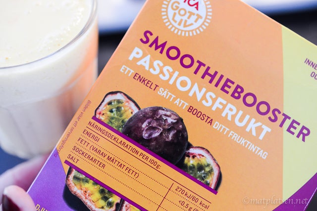Måste tipsa er om favoritsmothien just nu. Blanda naturell grekisk mild yoghurt + en näve frysta ”passionsbollar” + en gnutta honung = god vitaminkick!! Beroendeframkallande. (Ganska syrlig så vill man ha mildare/sötare är nog vaniljyoghurt gott att blanda med).