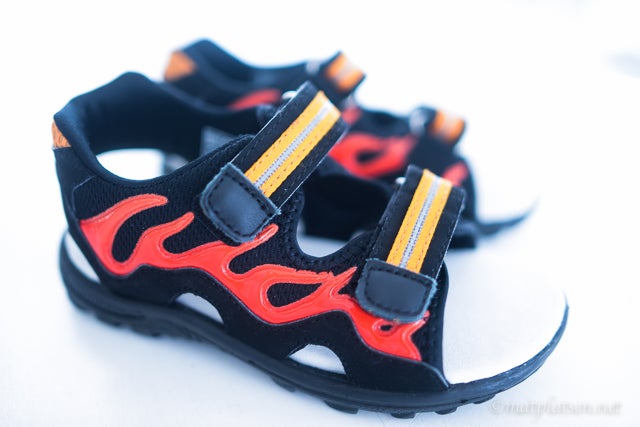 Hur glad blev man inte i morse när man vaknade till soool och värme och ännu en efterlängtad s-o-m-m-a-r-d-a-g!! Hoppas ni fick lite av den varan ni med var ni nu bor! Vi har mest skrotat runt här hemma, barnen har haft kompisar över mest hela dagen som kommit och gått och sen fick vi besök av mina föräldrar som kom över och grillade med mig och barnen (M är på vift hela dan med ”tipsgänget” och sätter sprätt på vinstkassan :)). Tog ett kvällsdopp innan de for hem, Sebbe höll på att somna knall fall i poolen haha, han däckade i samma stund huvudet landade på kudden sen. Evighetsmaskinen Olivia sitter bredvid mig och tittar på Violetta och jag tänkte mest kika in och säga hej och önska er godnatt så hörs vi mer i morgon. Då ska ni få lite goda grillrecept mm. I dag får ni nöja er med en bild på Sebbes nya skor som han tyckte jag skulle visa, han är omåttligt nöjd med dem 🙂 (valt själv vill jag tillägga, eldsflammor är kanske inte riktigt min melodi – men det är ju inte jag som ska ha dem på mig ;))