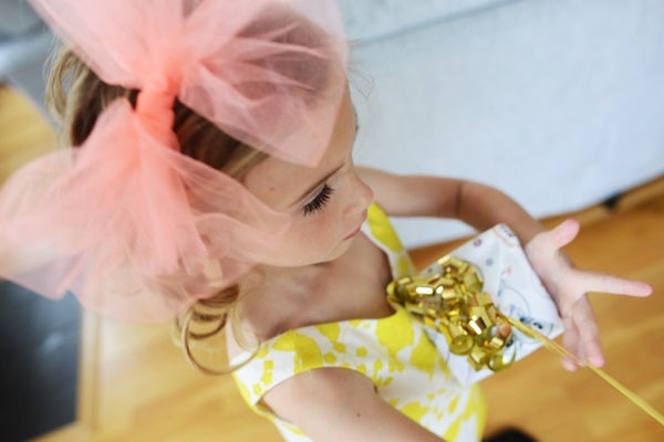 Kalasfin Olivia i går, på väg att fira farmor i finklänning / Zara, strumpisar / Lindex och diadem med tyllrosett /H&M. Sen svidades det om till nattlinne och bar av på Pyjamasparty hos klasskompisen som fyllde 7 år (och i paketet gömde sig en parfym + nalle, kit från Zara)